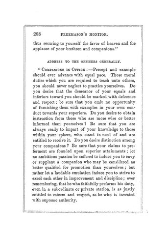 thus securing to yourself the favor of heaven and the applause of your brethren and companions." ADDRESS