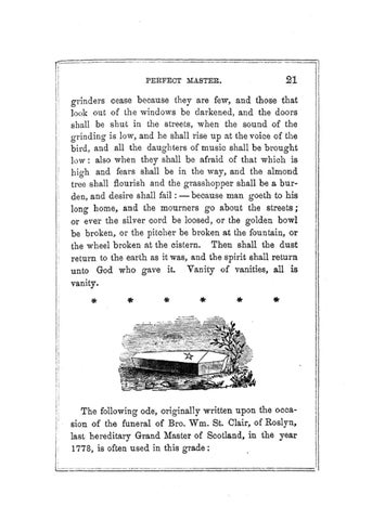 The following ode, originally written upon the occasion of the funeral of Bro. ·wm. St. Clair, of Roslyn, last hereditary Grand Master of Scotland, in the year 1778, is often used in this grade ; ,_