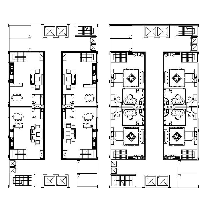 In the macro perspective of the residential housing project in Karama, Dubai, the focus lies on the repeated, staggering layout and its ability to achieve resilience, optimizing structural integrity against environmental challenges.