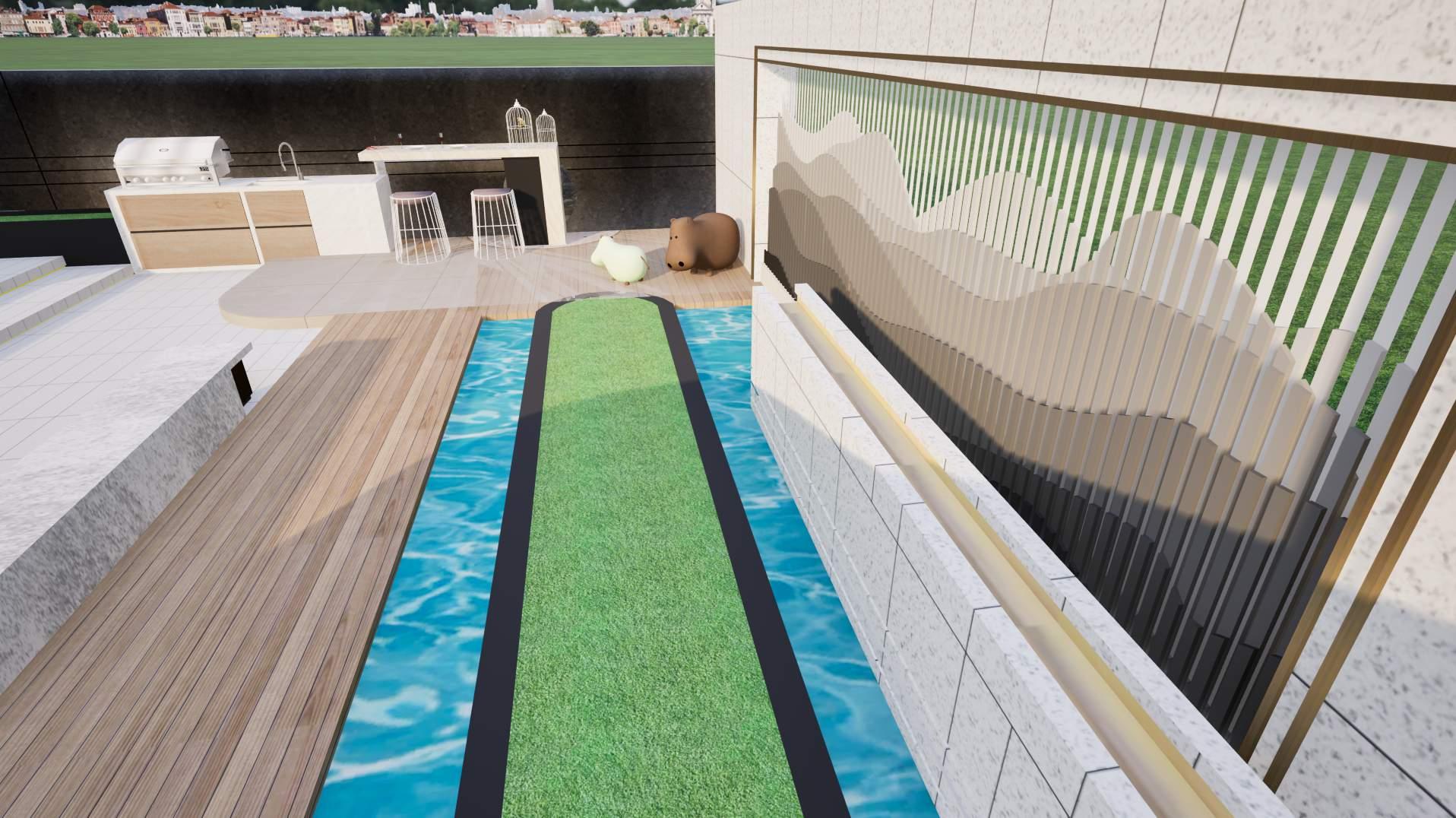 The integration of retail, commercial spaces, and landscaped areas within the site enhances the neighborhood's vibrancy, fostering a resilient and interconnected living environment.