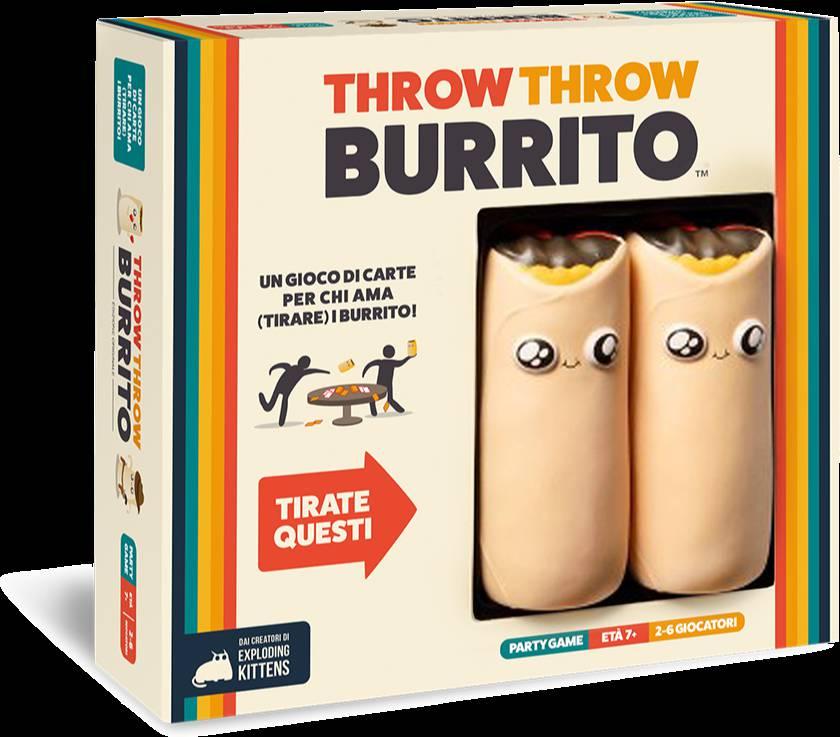 ThrowThrowBurrito,dai7ai99anni Sitrattadiunacombinazionetraun giocodicarteeunduelloall’ultimo sangue,doveigiocatorisisfidano facciaafacciacollezionandocarte, guadagnandopuntielanciandosi deiburrito!