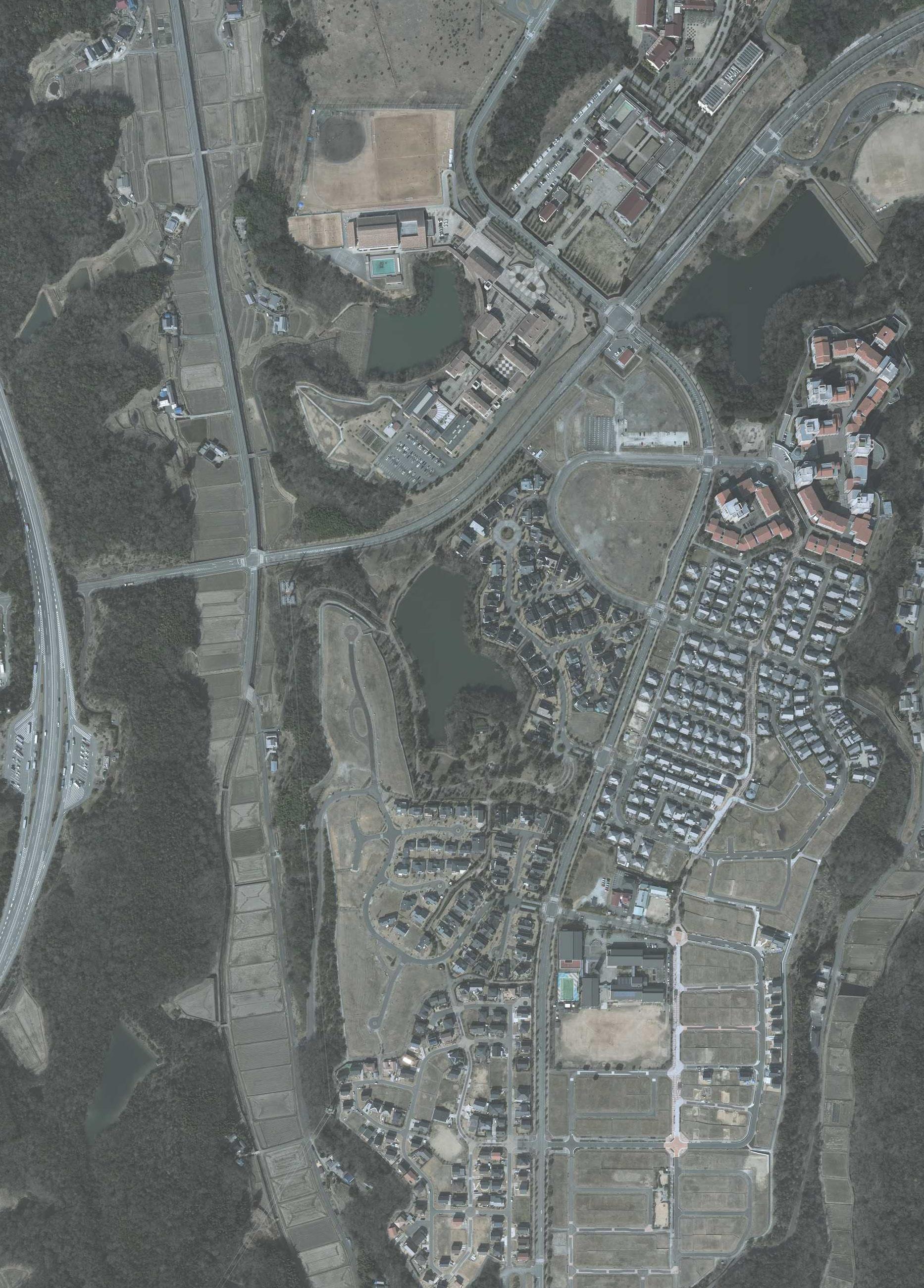 対象敷地である学園西公園は兵庫県三田市に位置する。周辺には関西学院大学三田キャンパスや道の 駅、住宅が建ち並びニュータウンとしての特徴を持つ。公園内は木々が生い茂り、中央には大きな溜 め池がある。近所の人が散歩に来ている様子をよく見かける。その広大さゆえか、はたまた住宅地に 隣接しているからか、ここのくうきは静かでひっそりとしている。