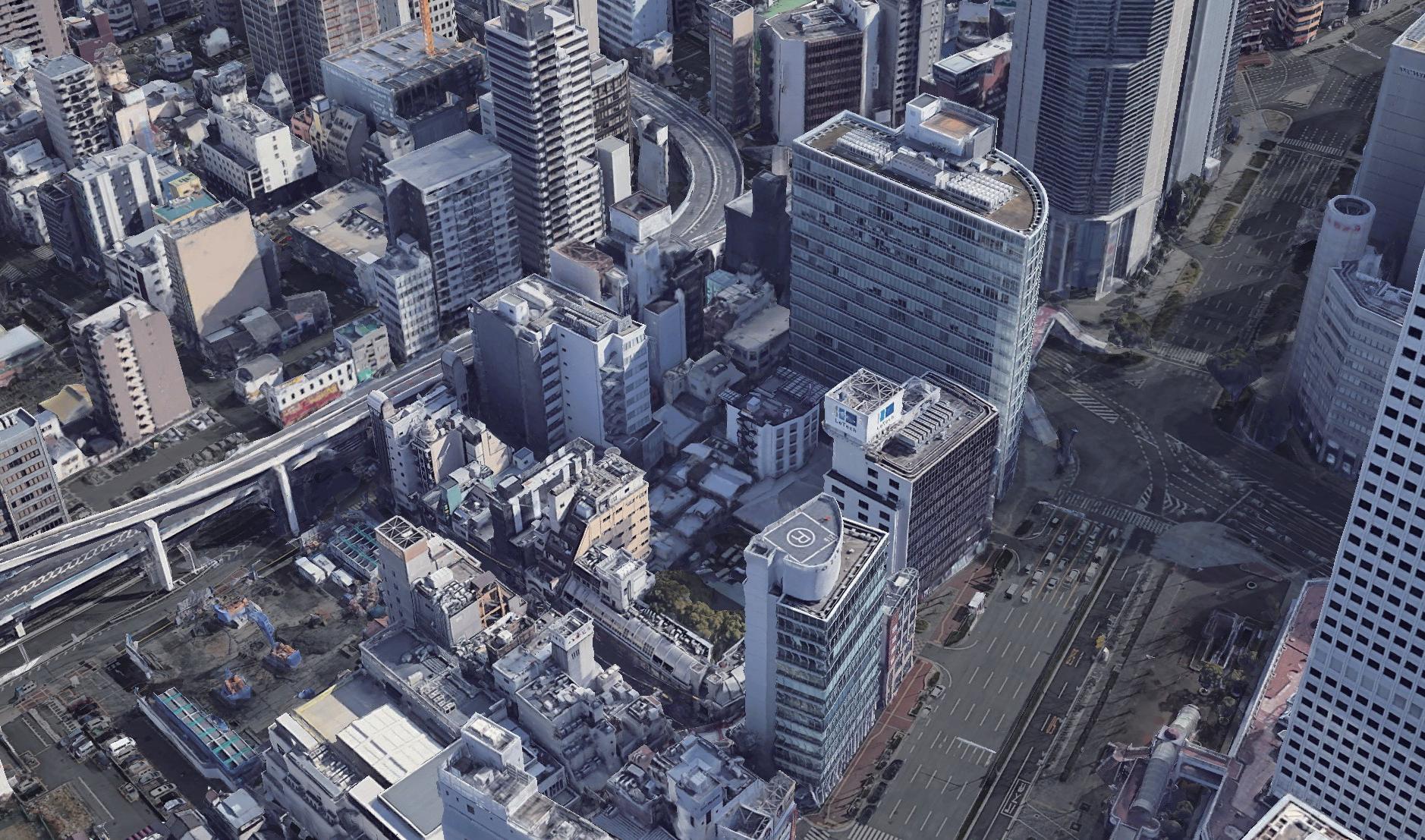 対象敷地は大阪梅田駅を御堂筋沿いに南へ下ったところに位置する角地だ。