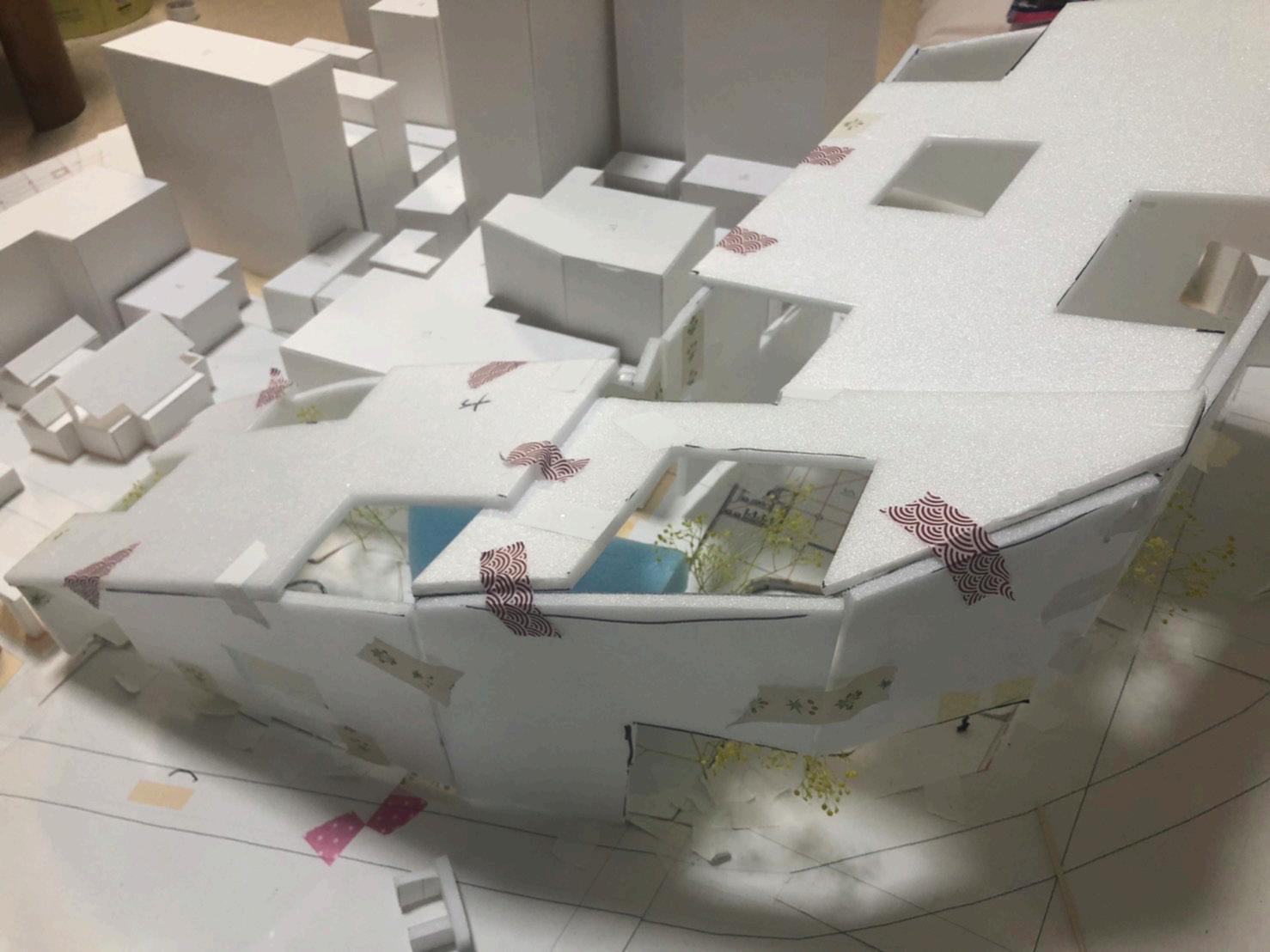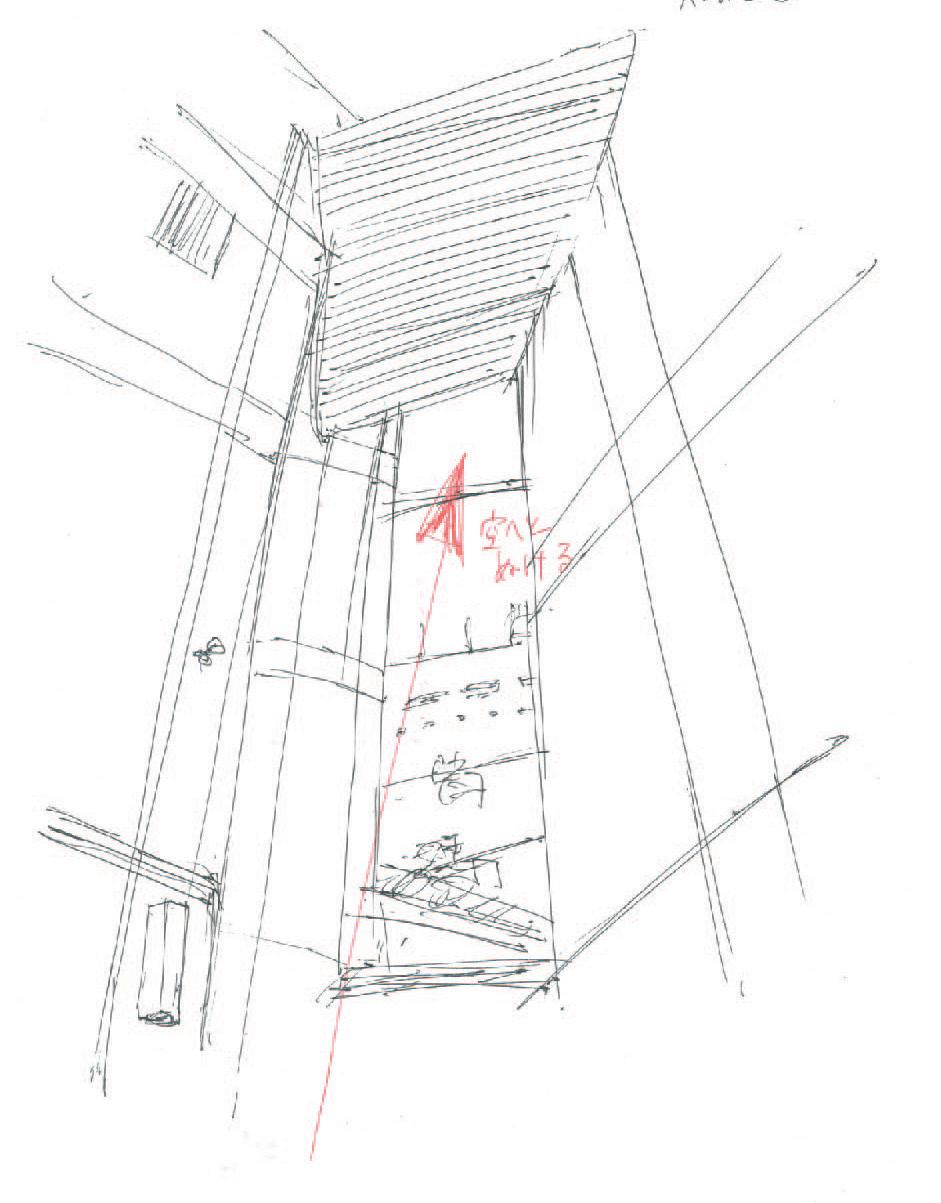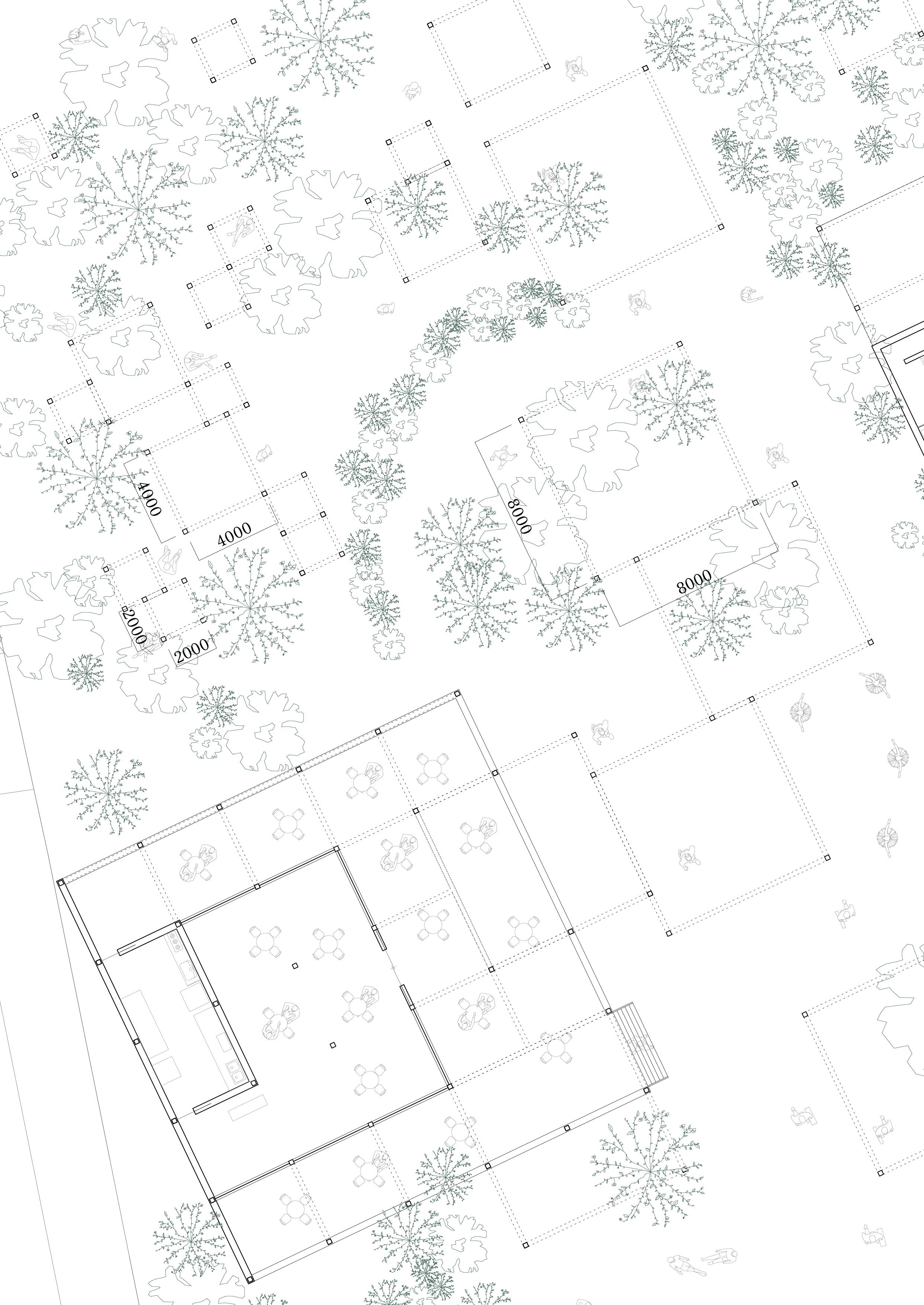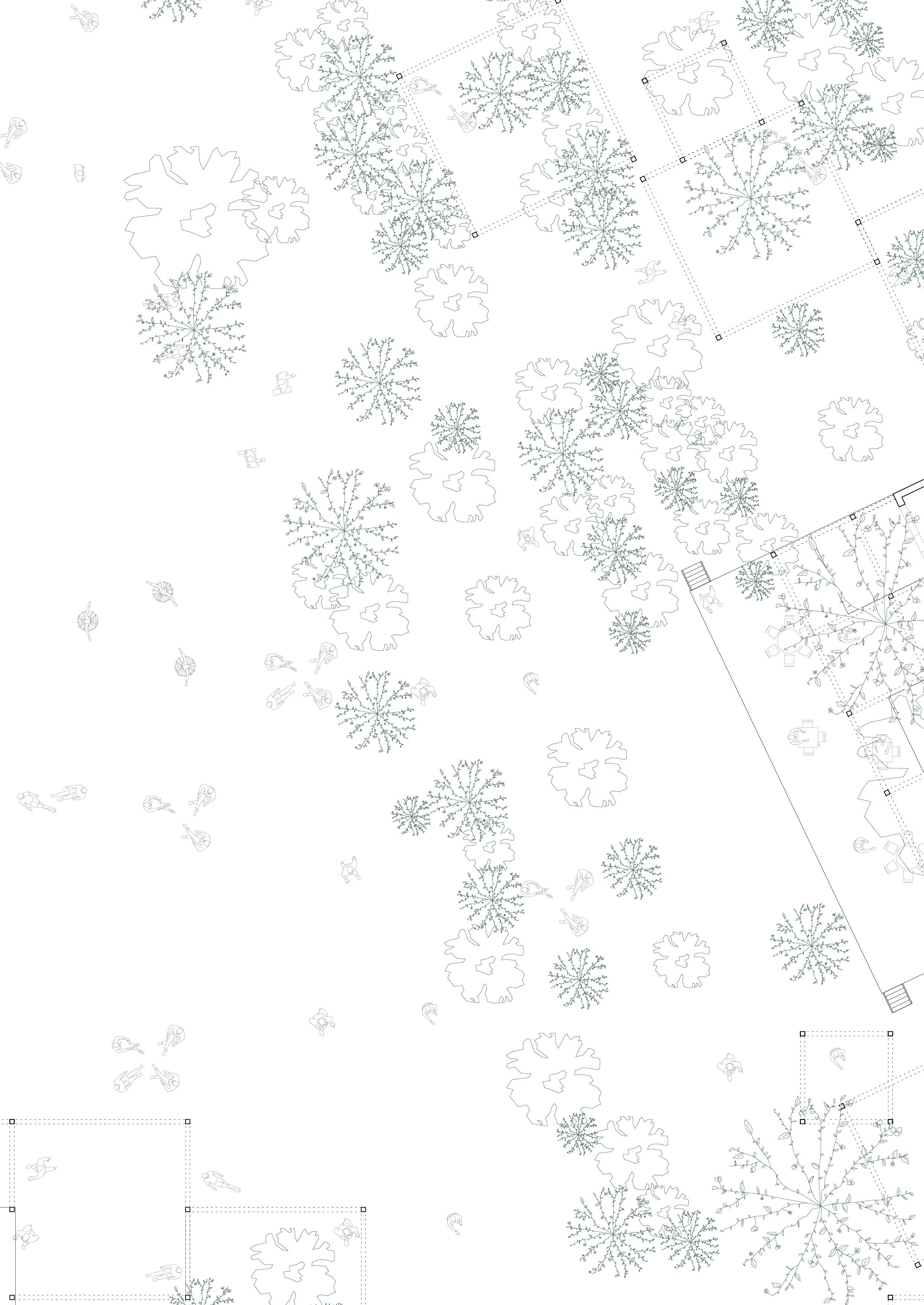 屋根をつくりすぎない 木が屋根となるように 建物を変形する