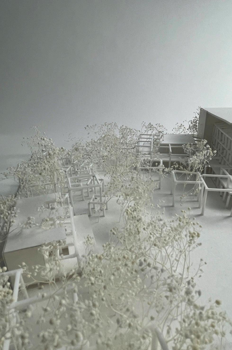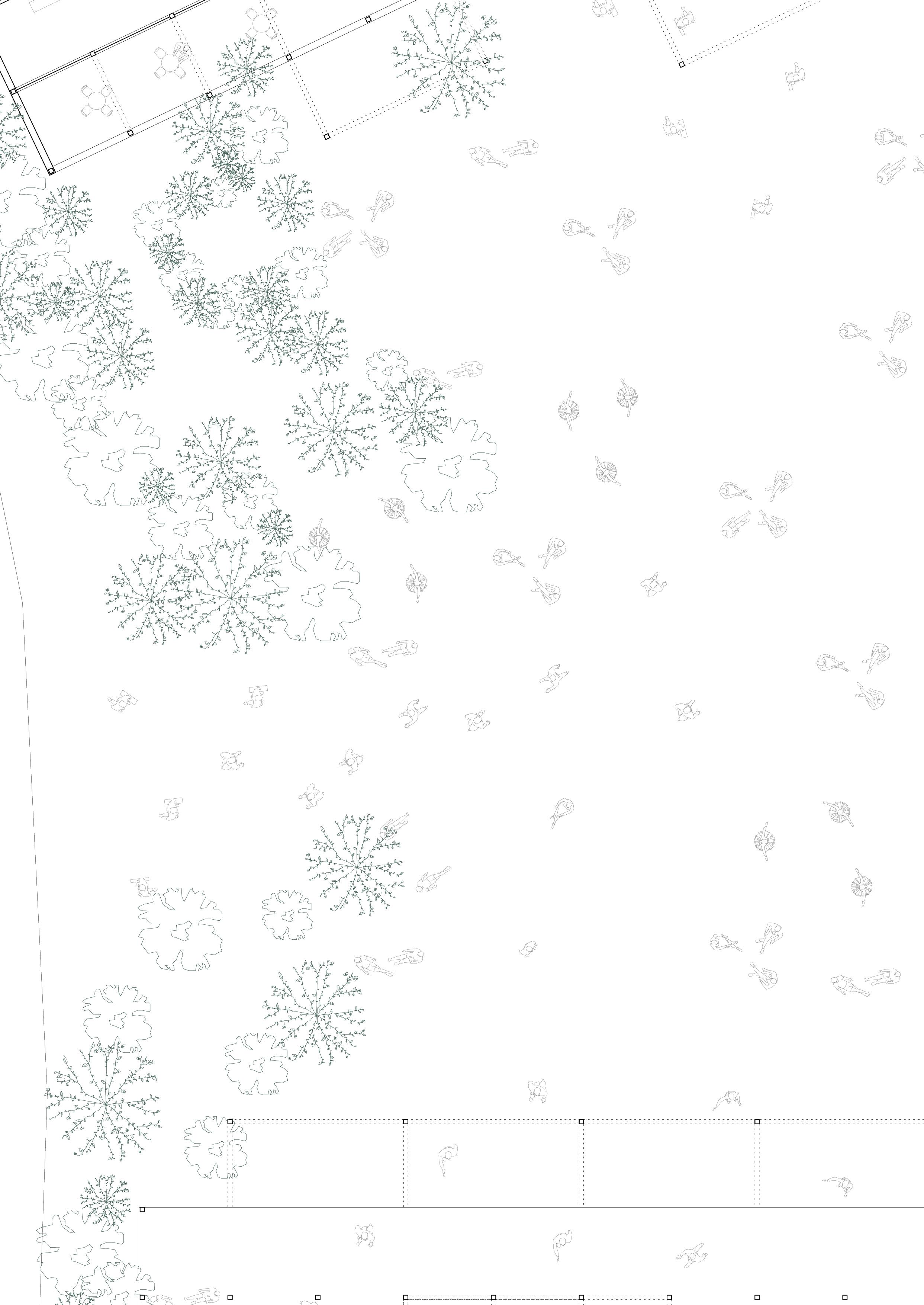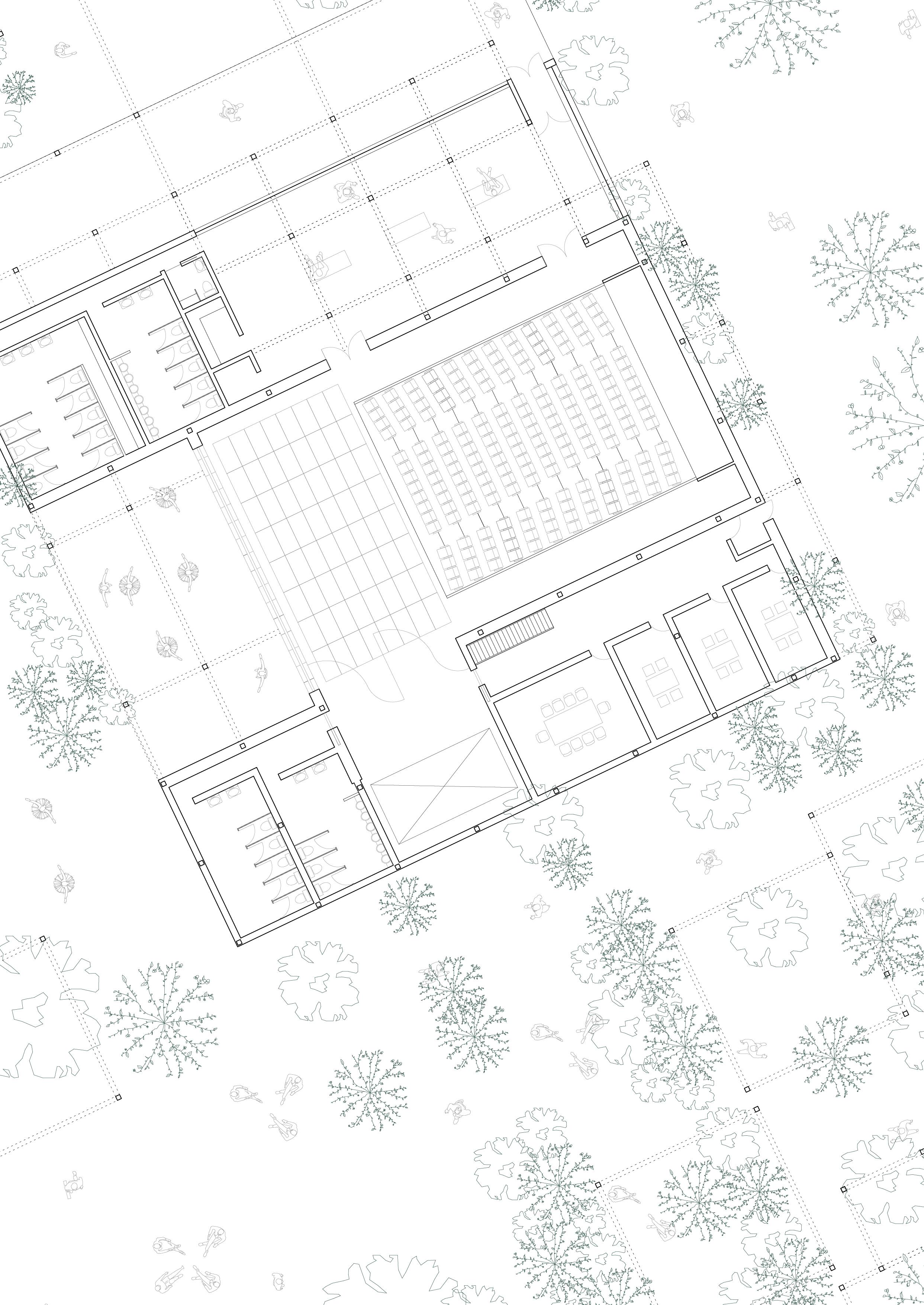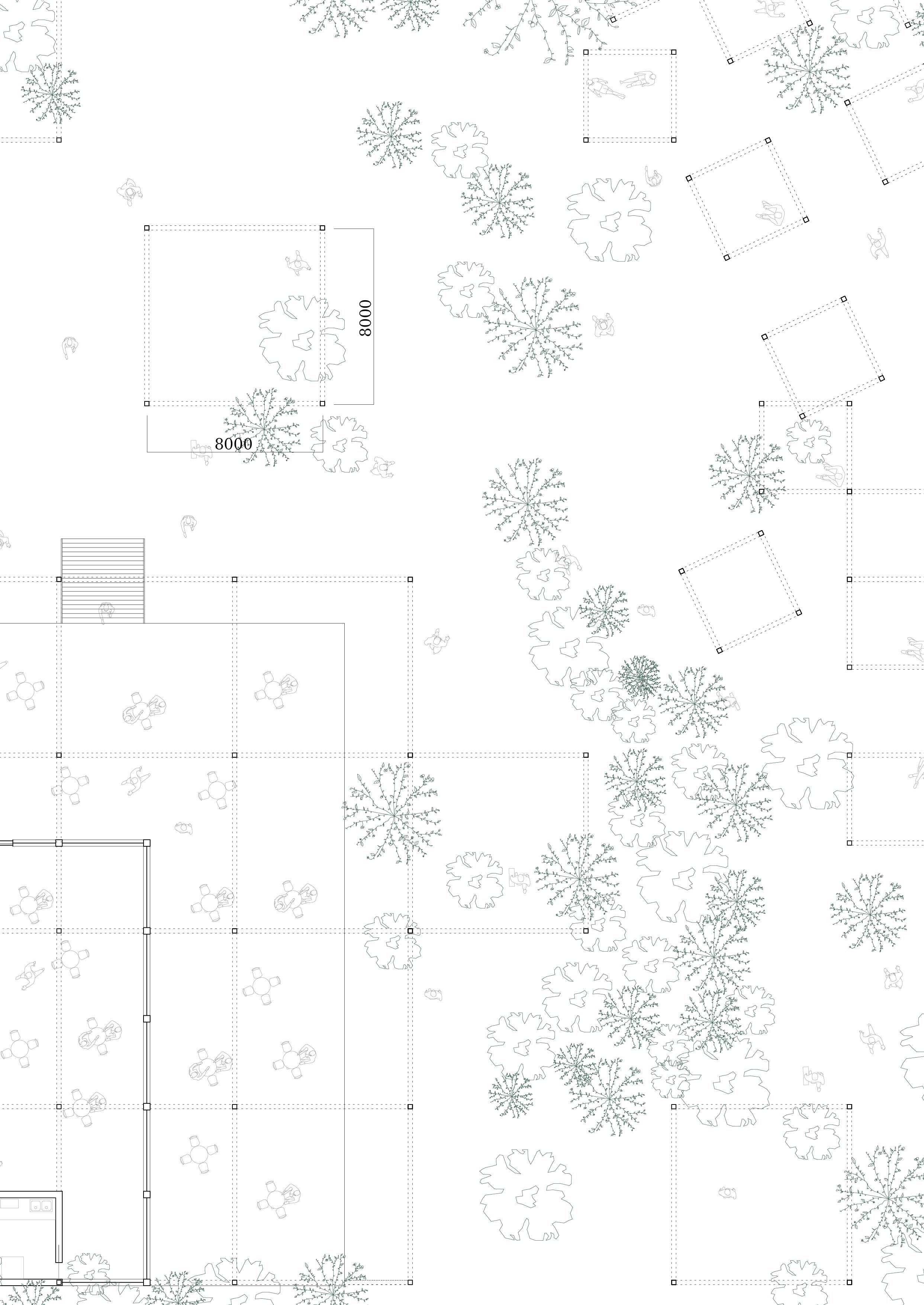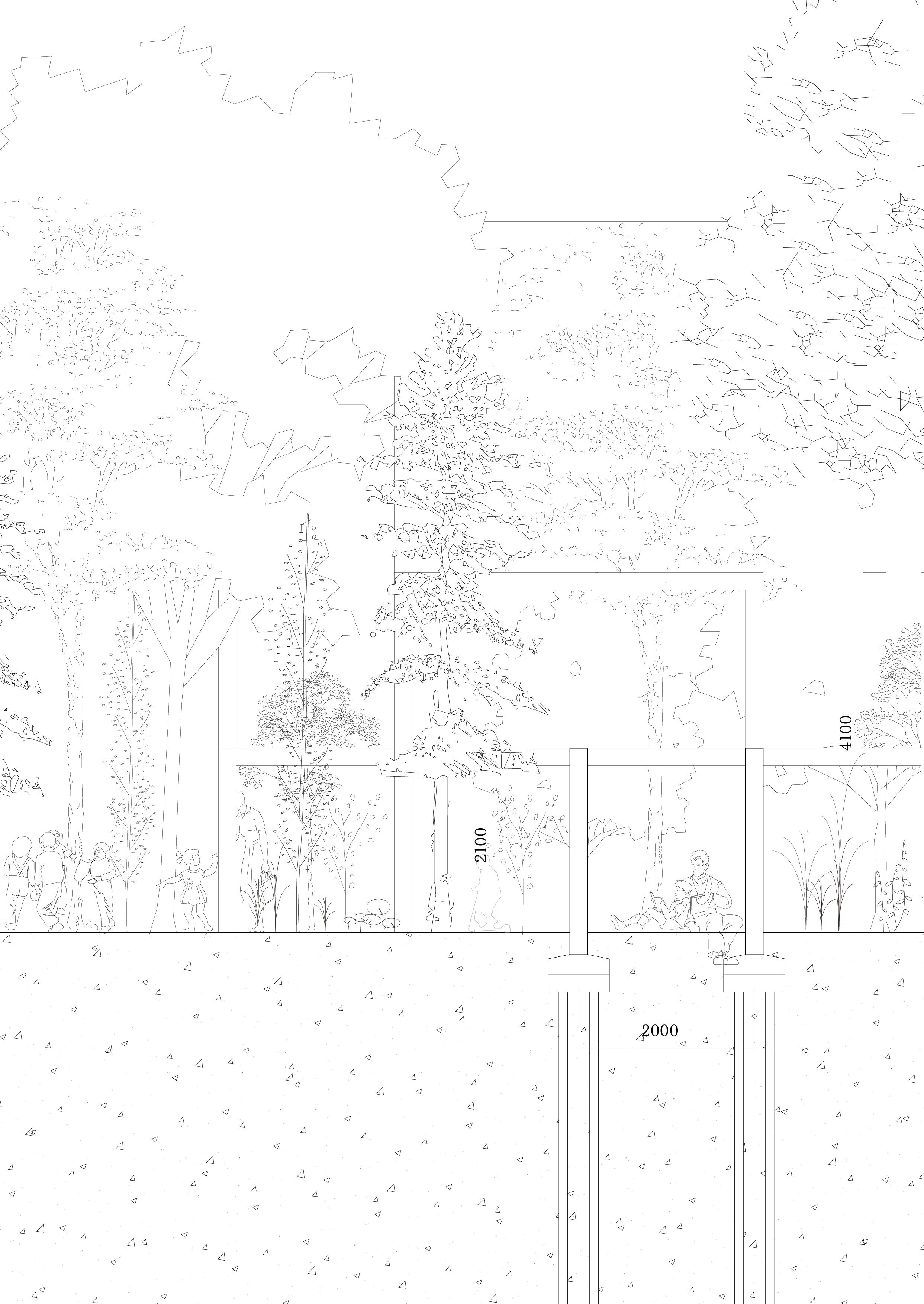 屋根をつくりすぎない 木が屋根となるように 建物を変形する