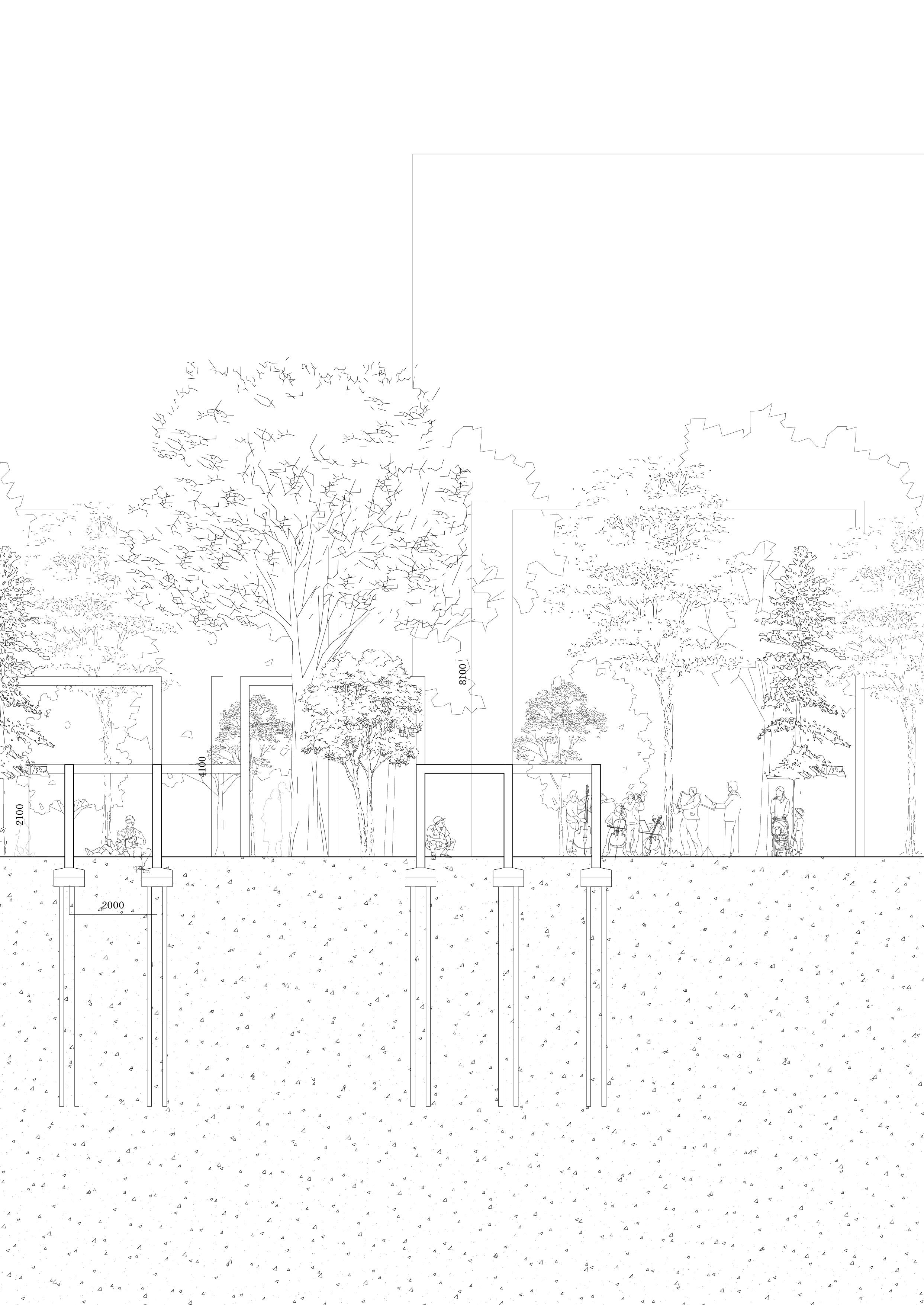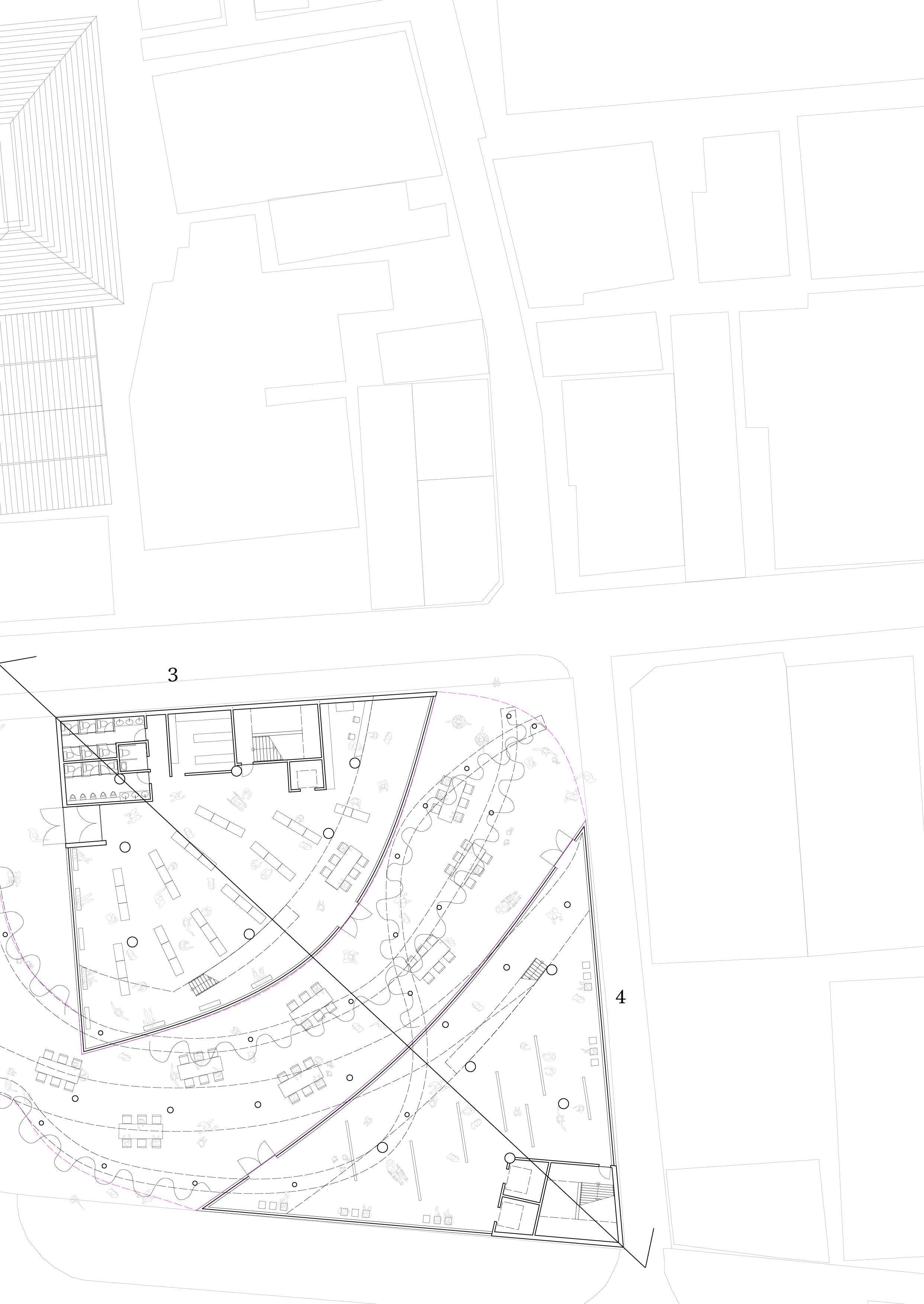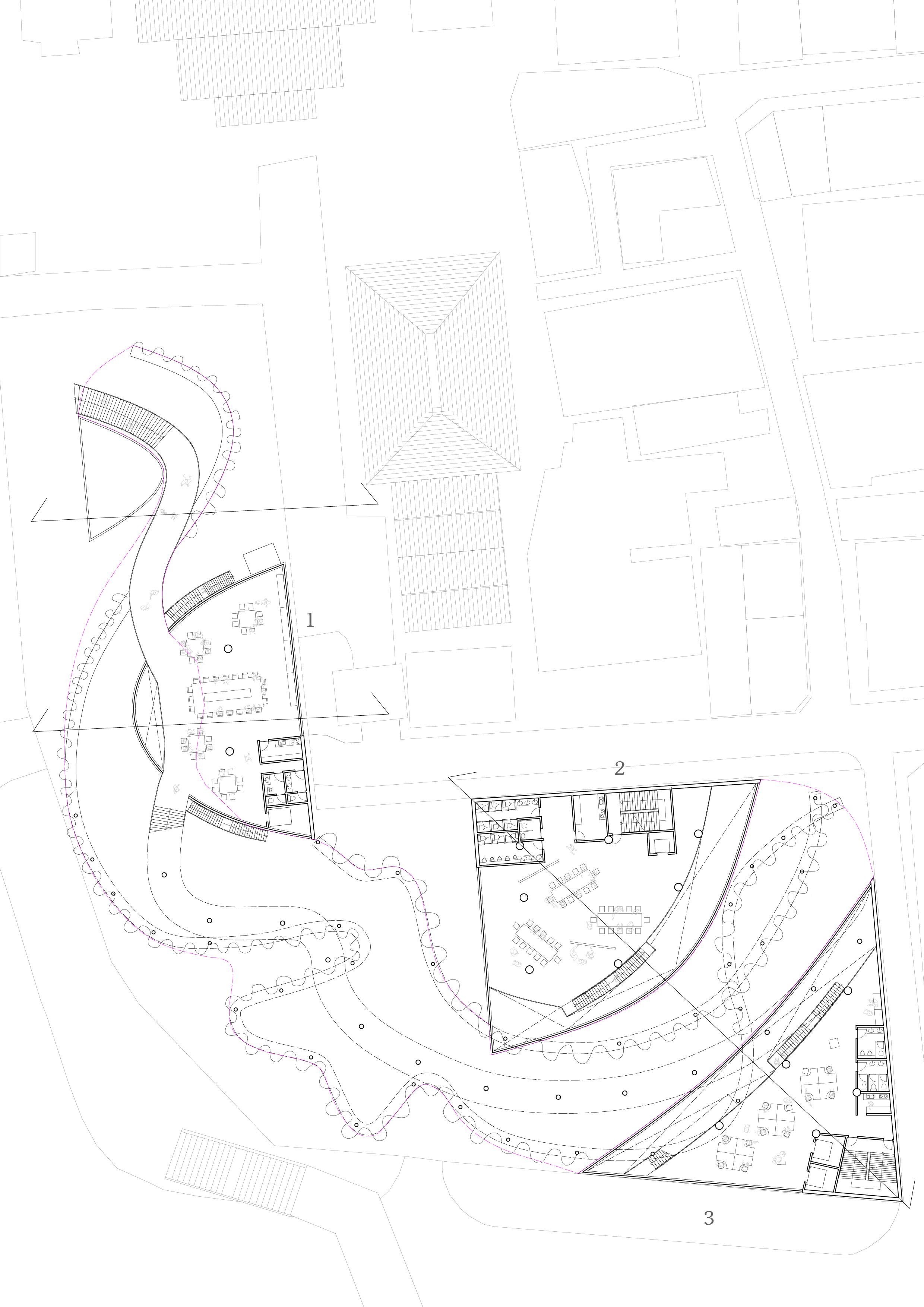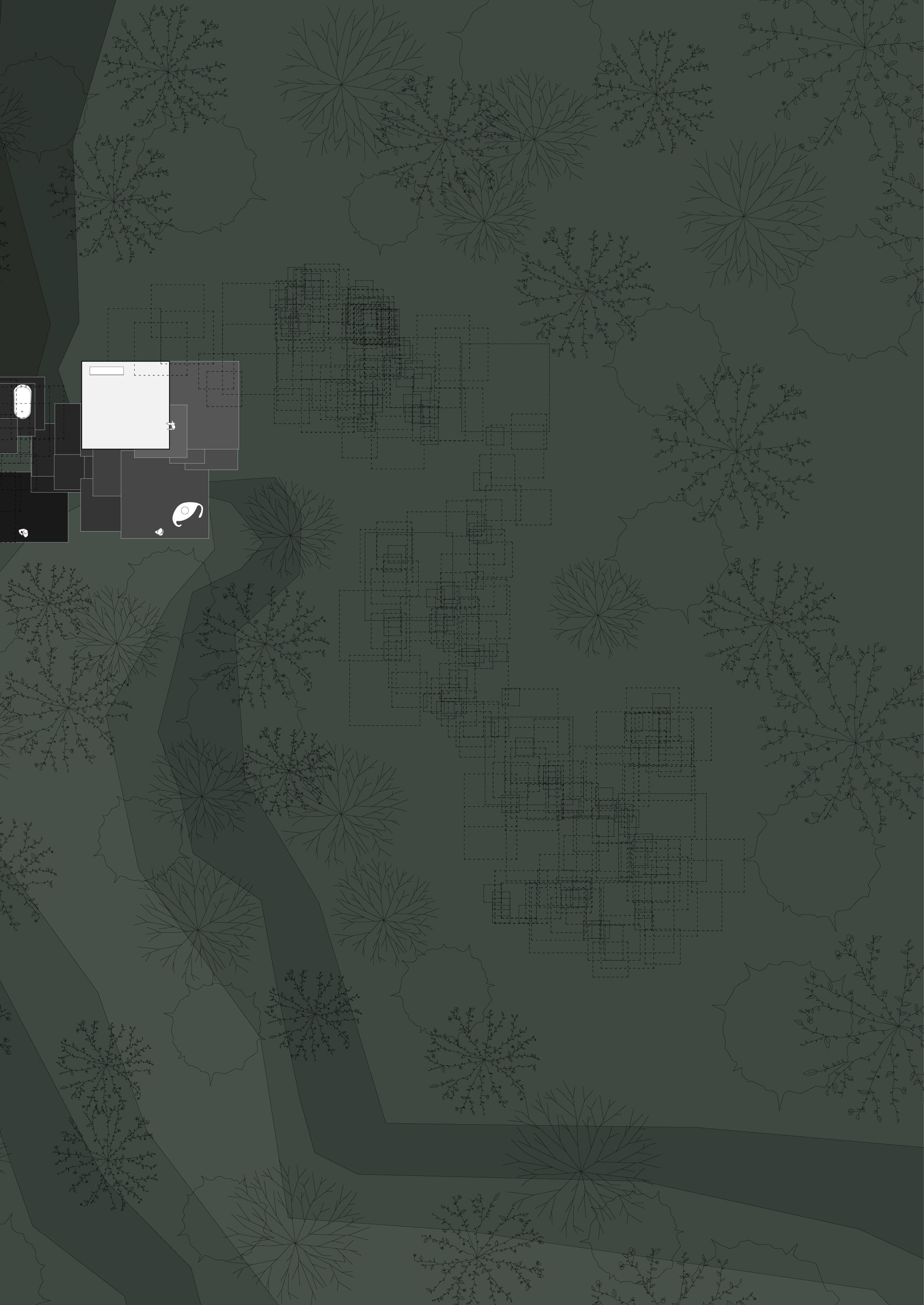 屋根をつくりすぎない 木が屋根となるように 建物を変形する