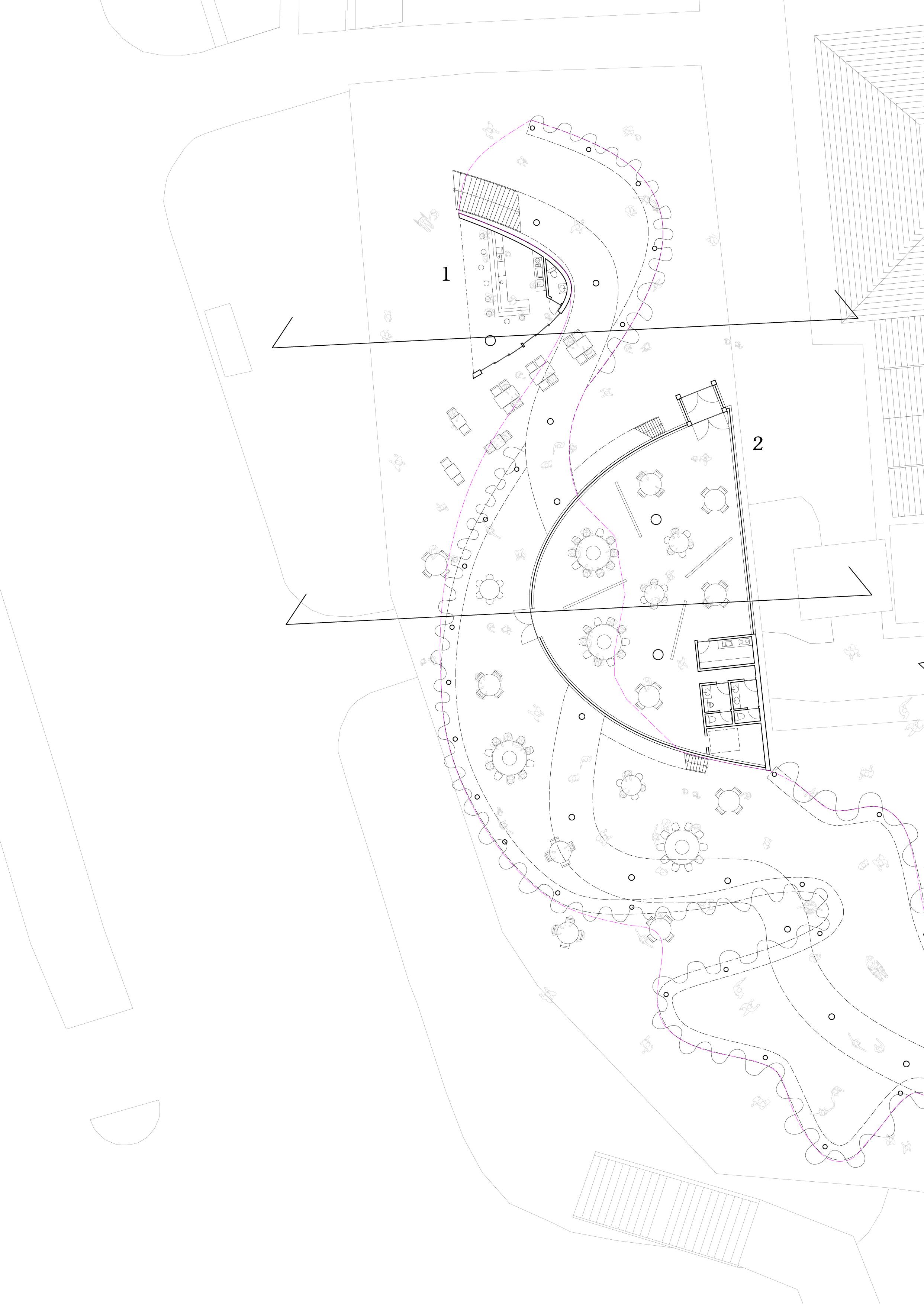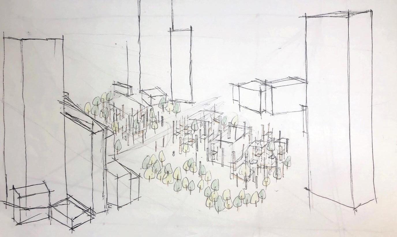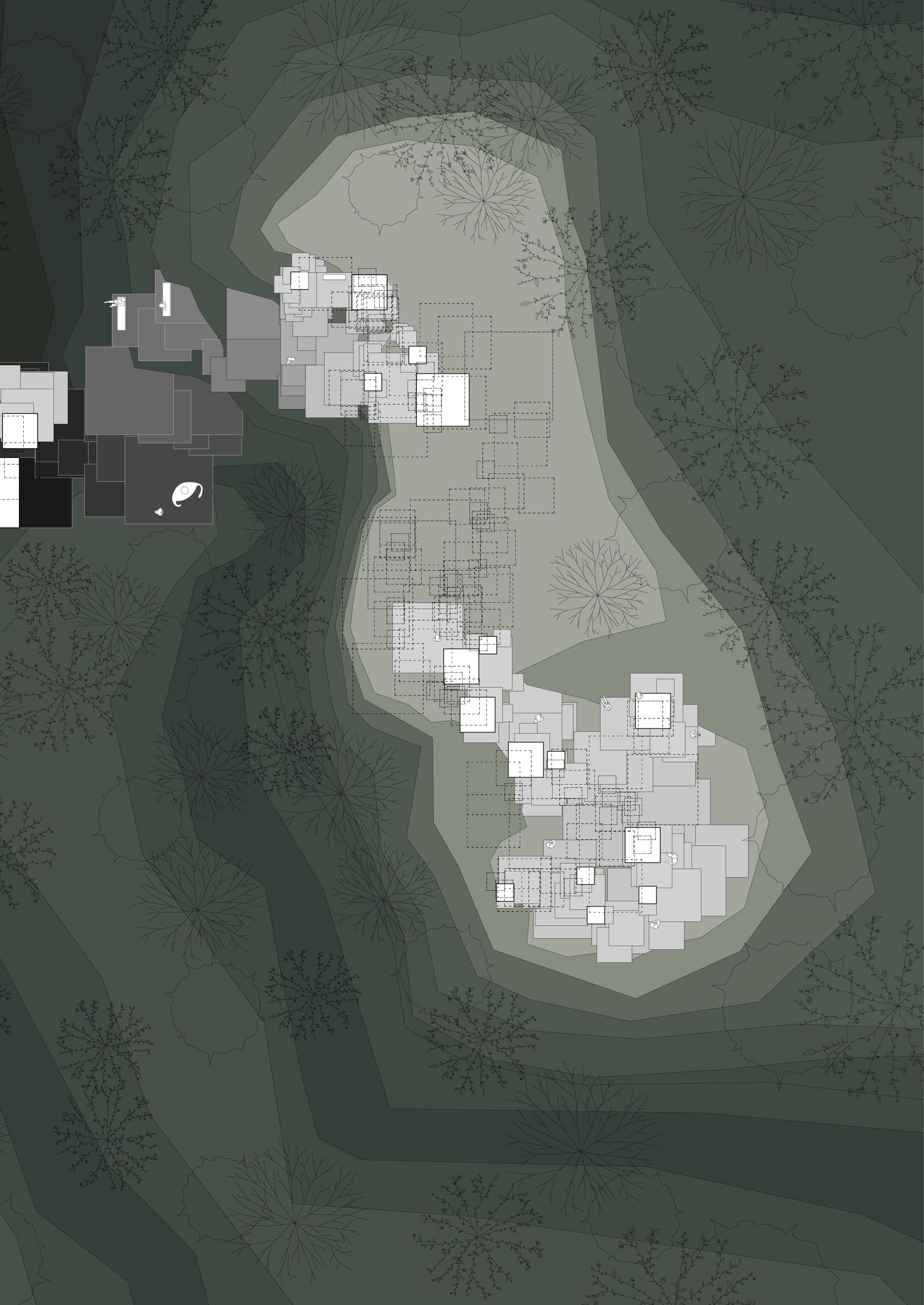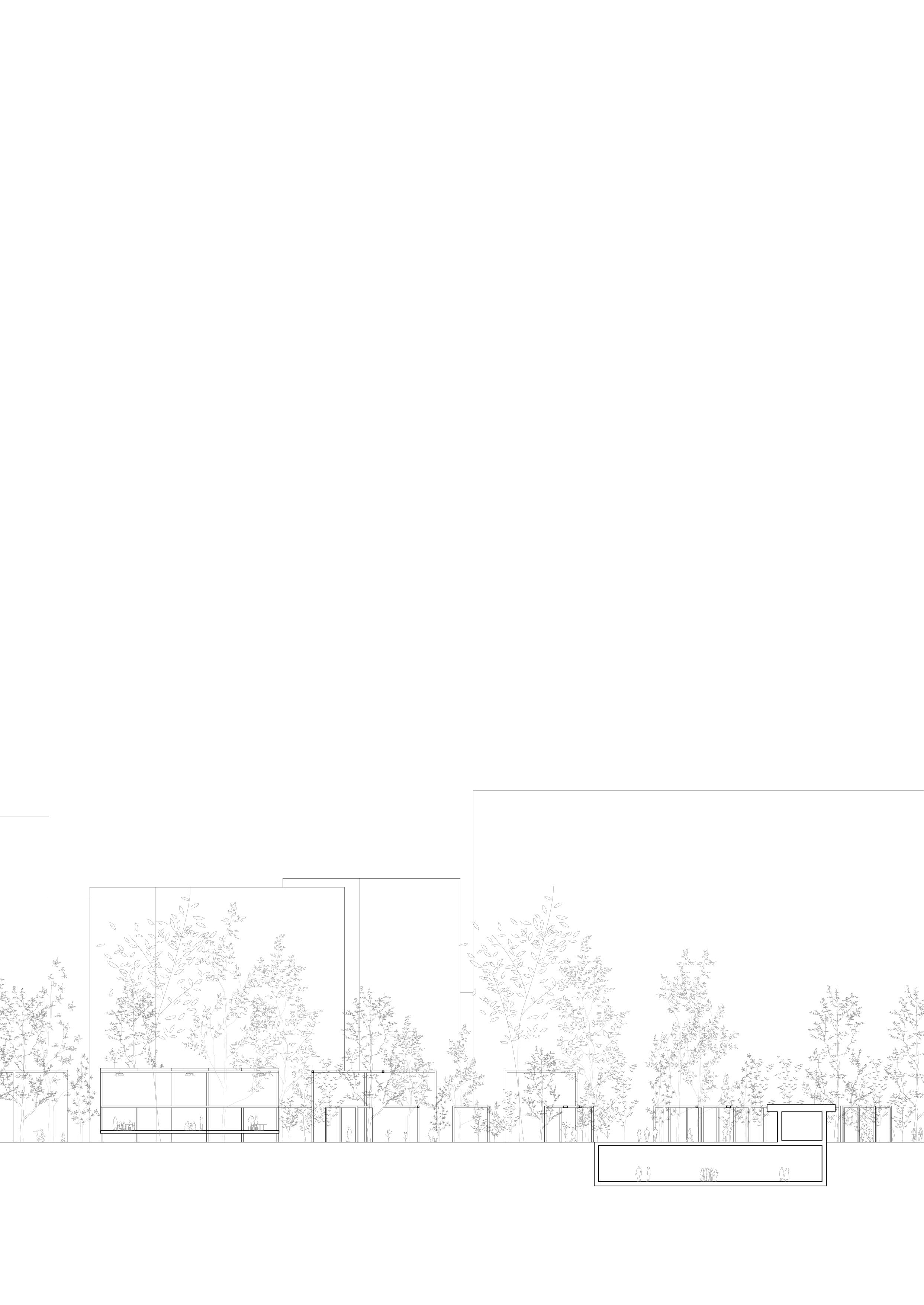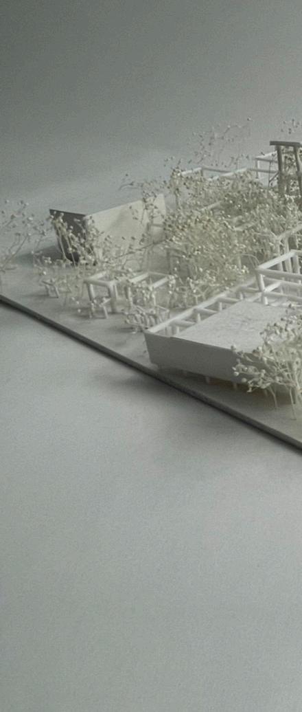 屋根をつくりすぎない 木が屋根となるように 建物を変形する
