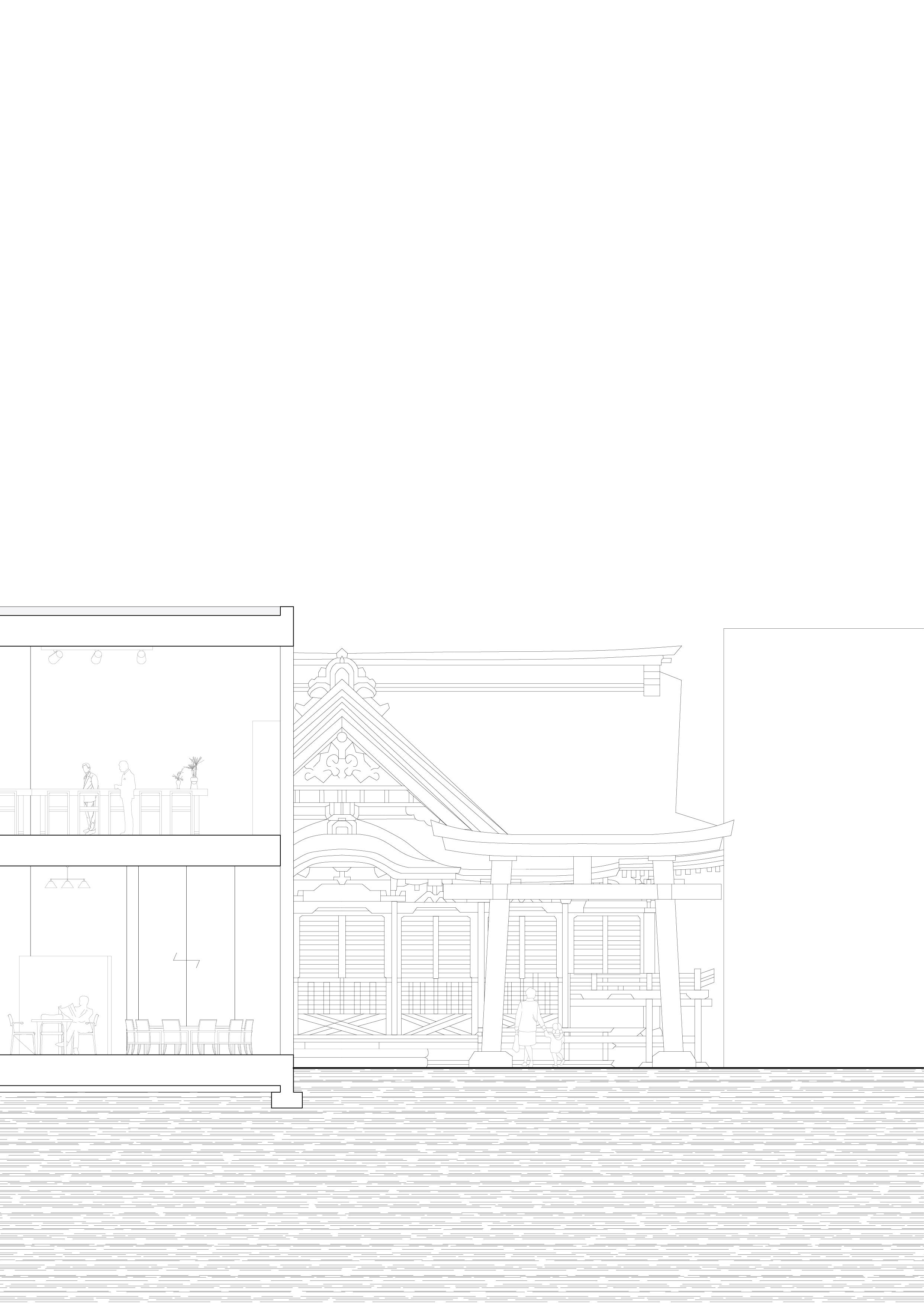 ごちゃ混ぜな、お初天神の良さを建築化する。