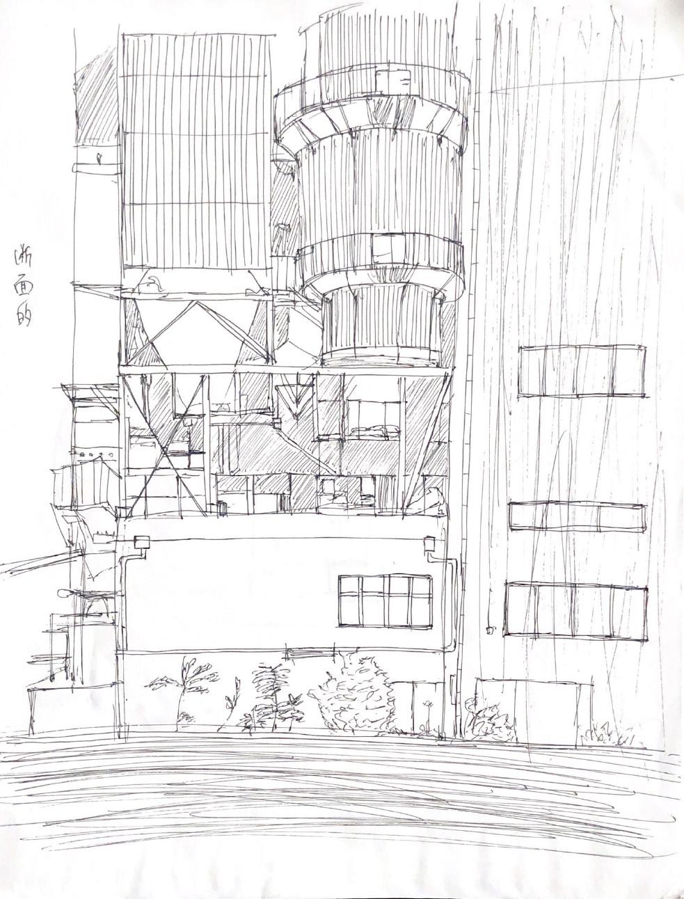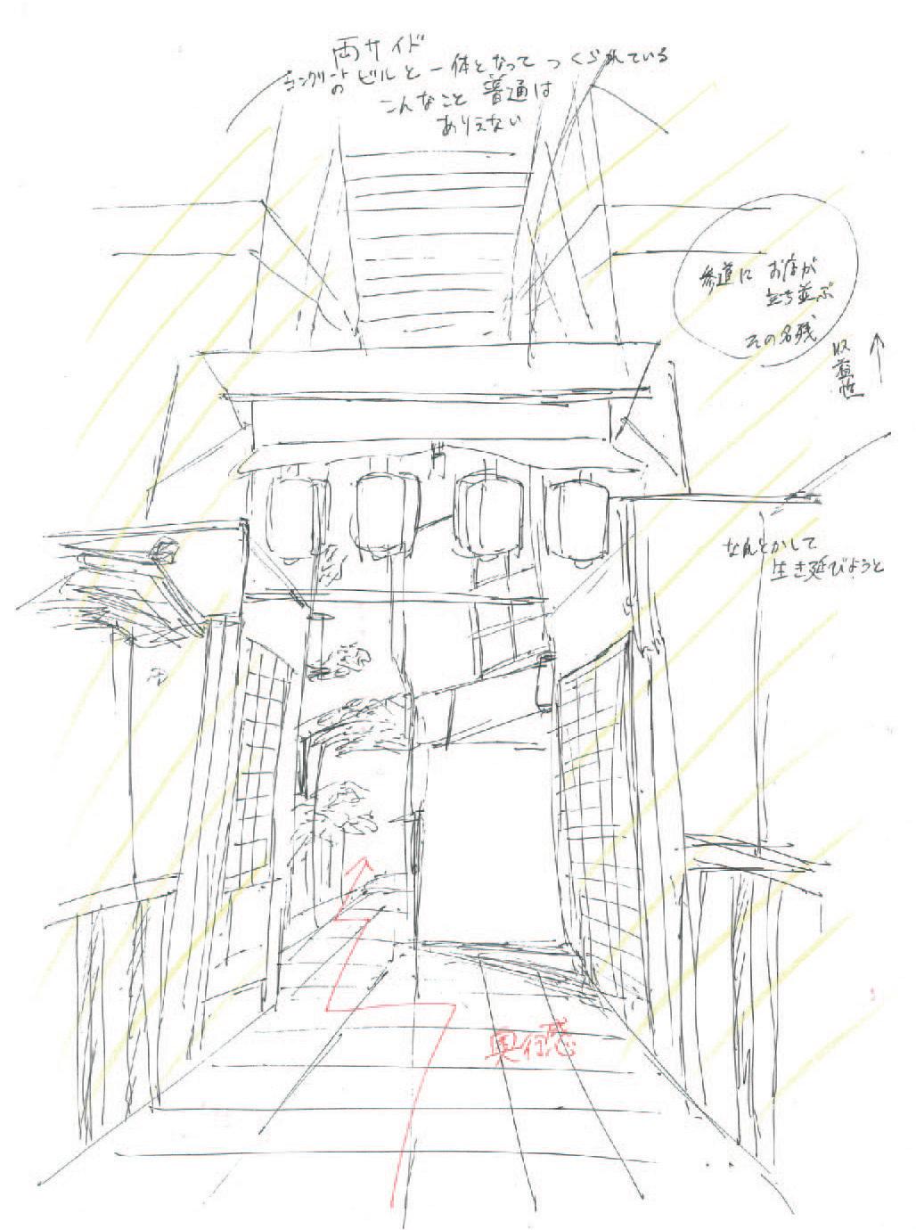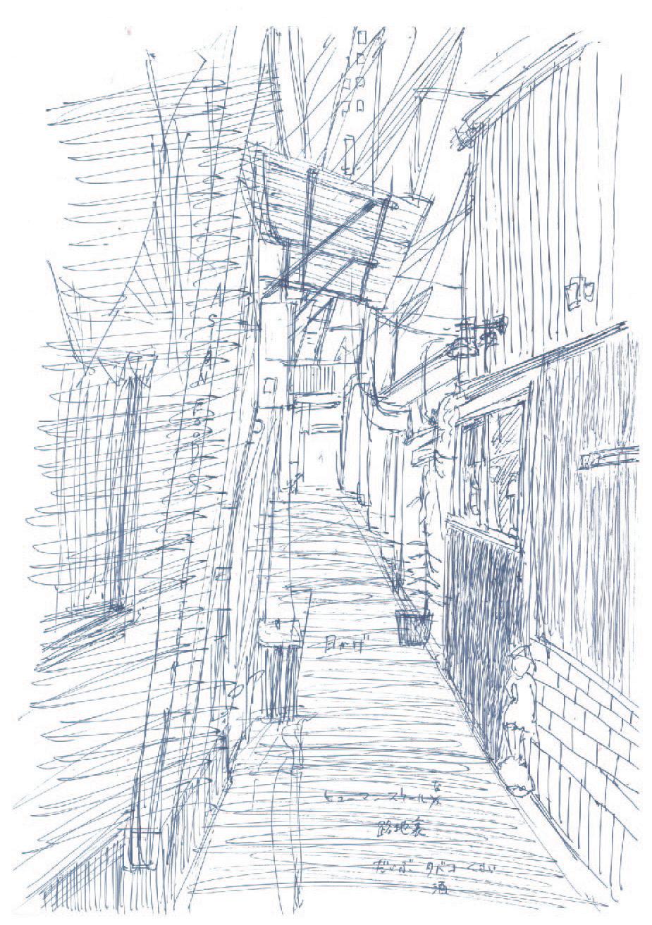 周囲の建物に領域を干渉されるその姿は、よくわからない場所だという印象を抱かせる。