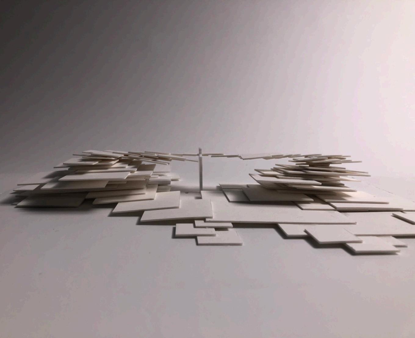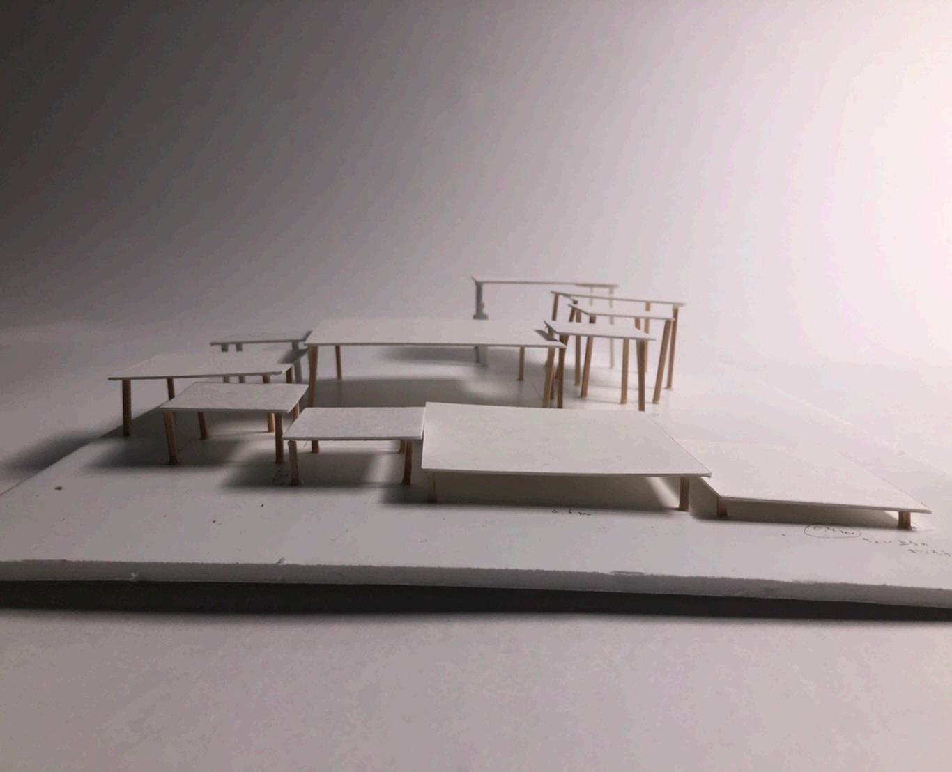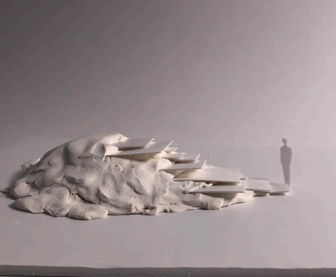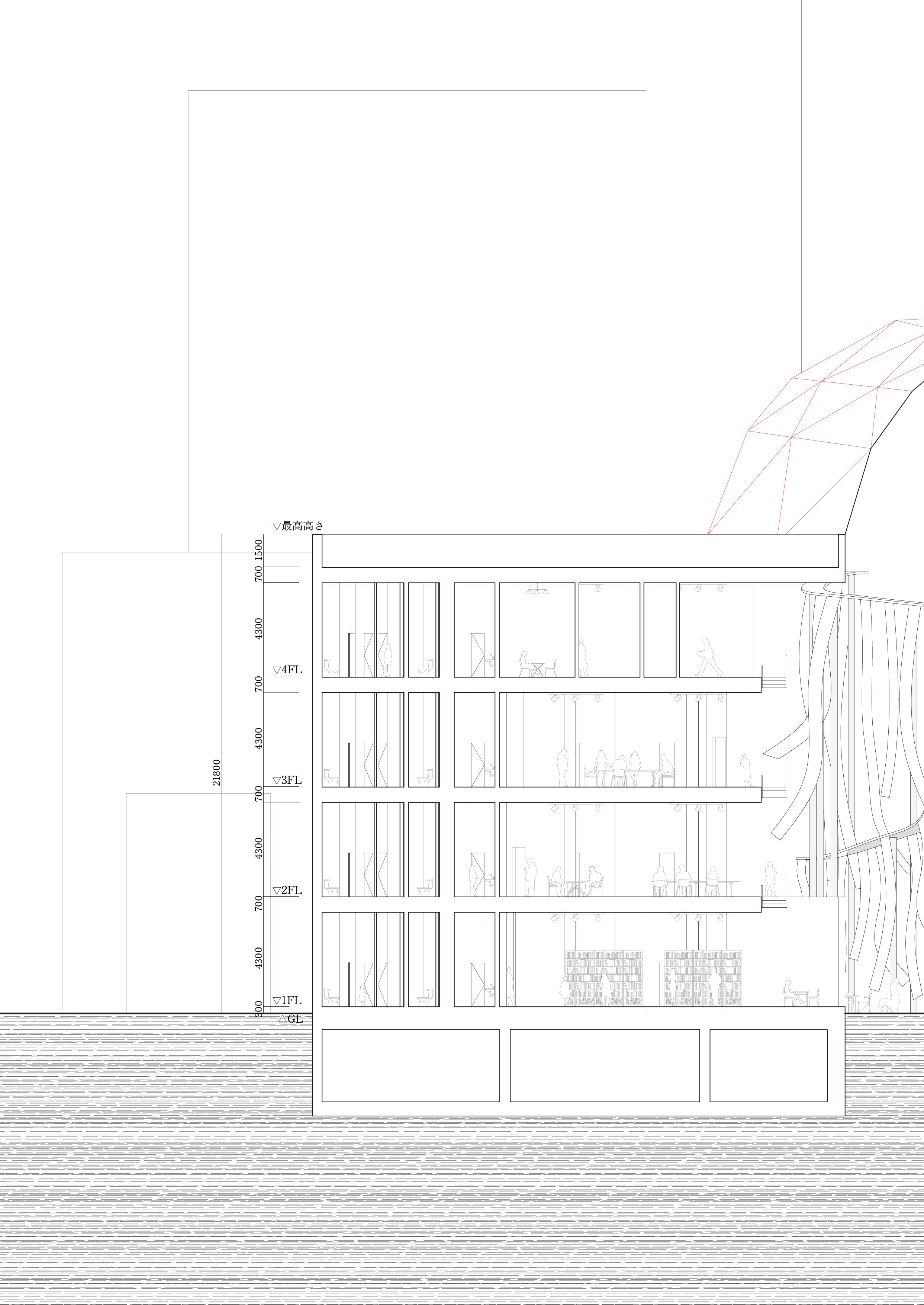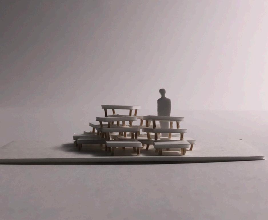 床を積み重ねるという操作によって、今この瞬間、ここに自らが存在していることを各々に知らせた いと思った。「今」のかがやきを建築で助長したい。また、連続するその積み重ねは、これまでそし てこれからの時間の流れを表すことにならないだろうか。