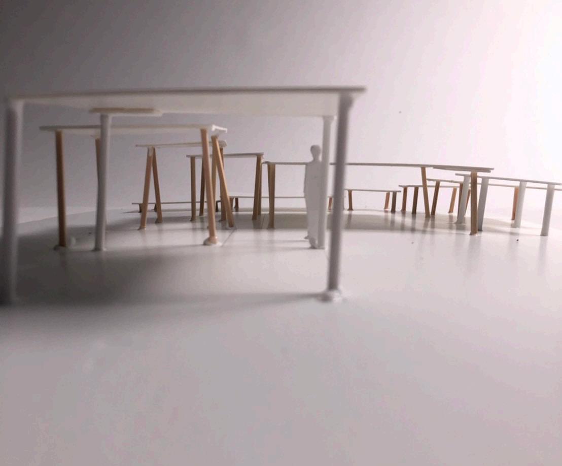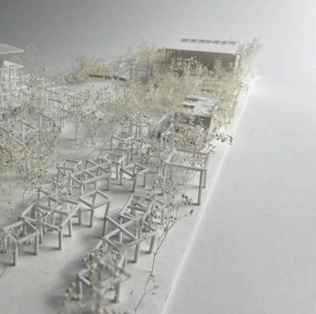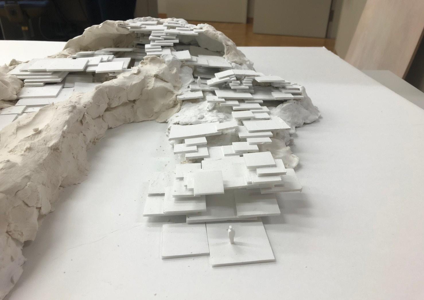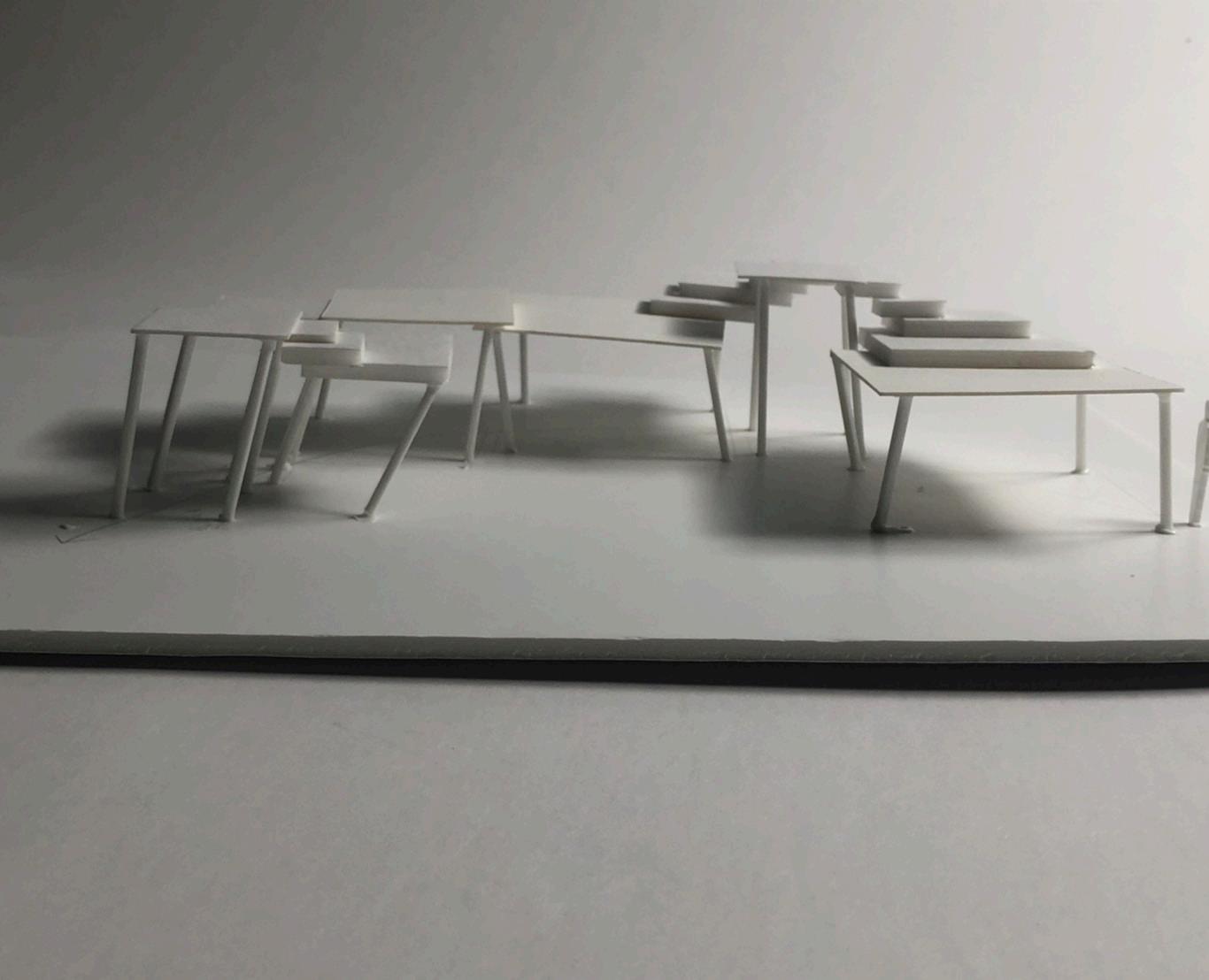 床を積み重ねるという操作によって、今この瞬間、ここに自らが存在していることを各々に知らせた いと思った。「今」のかがやきを建築で助長したい。また、連続するその積み重ねは、これまでそし てこれからの時間の流れを表すことにならないだろうか。