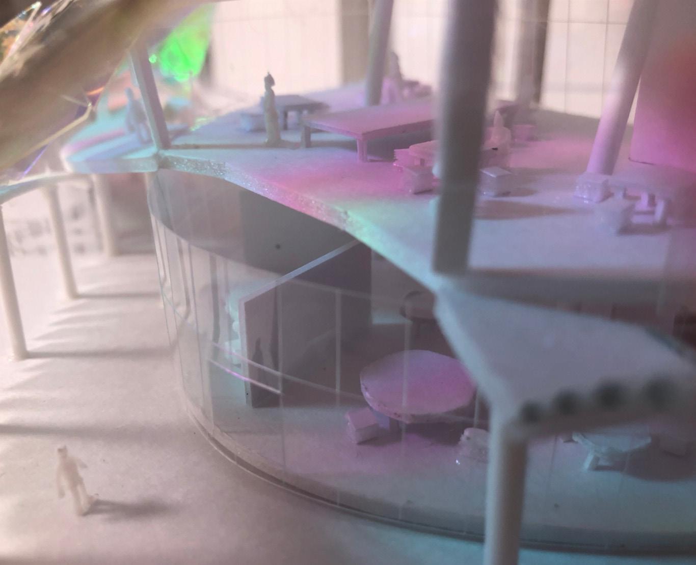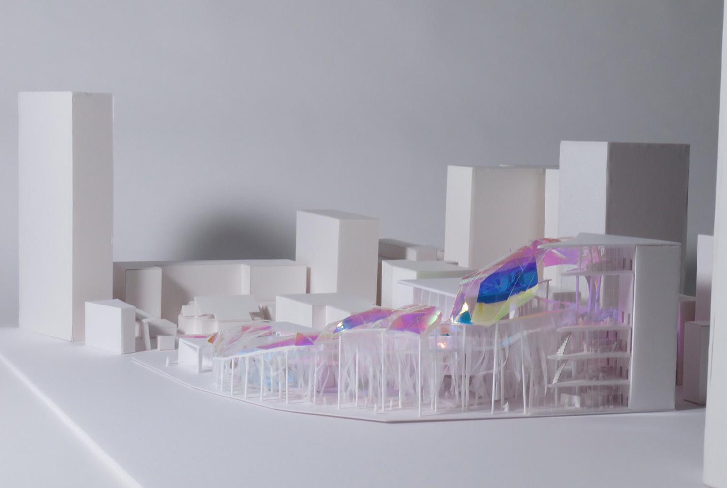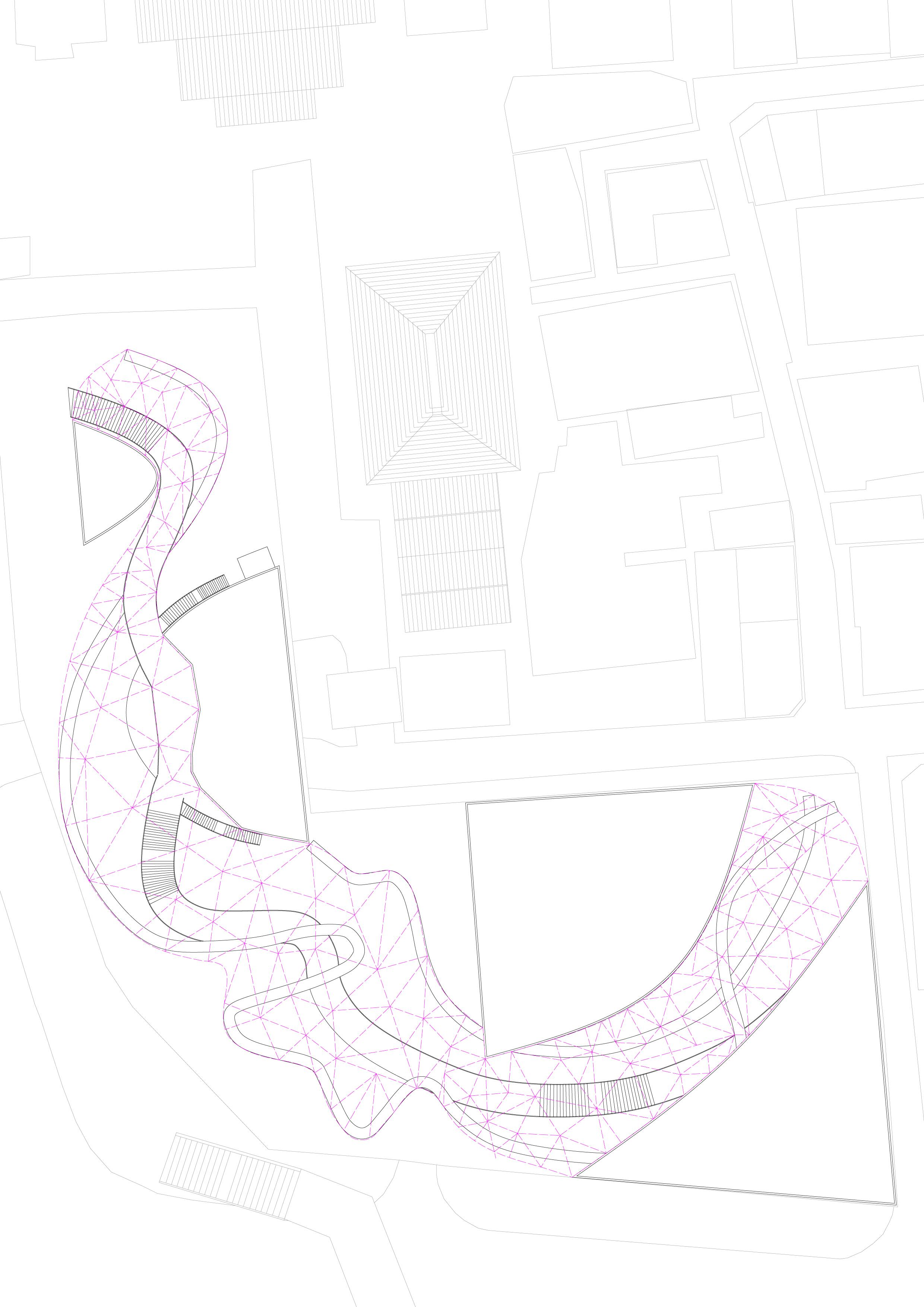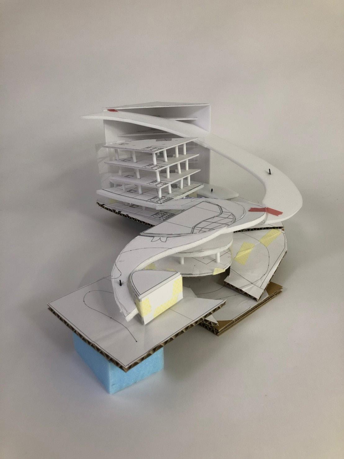 床を積み重ねるという操作によって、今この瞬間、ここに自らが存在していることを各々に知らせた いと思った。「今」のかがやきを建築で助長したい。また、連続するその積み重ねは、これまでそし てこれからの時間の流れを表すことにならないだろうか。