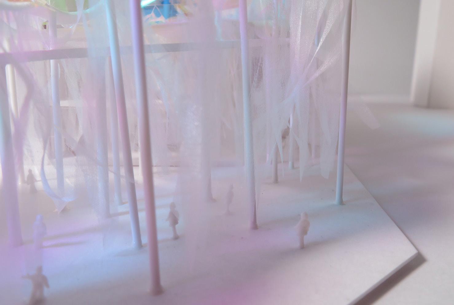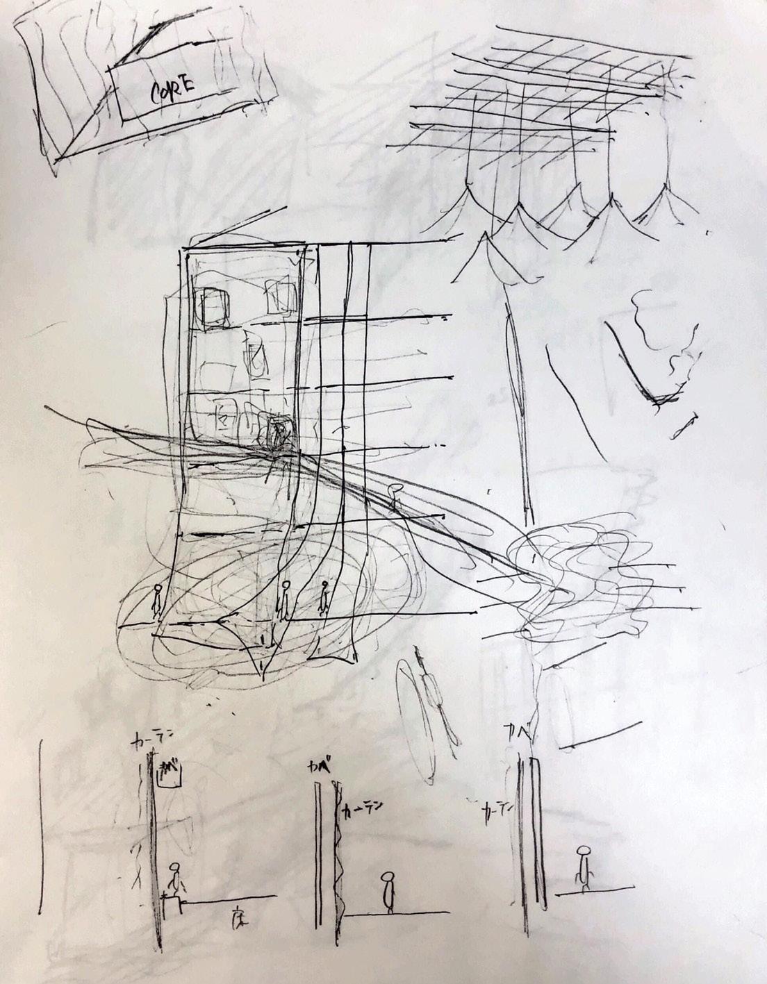場を包む役割を果たす膜と共に、境界を曖昧にするカーテンを用いることにする。