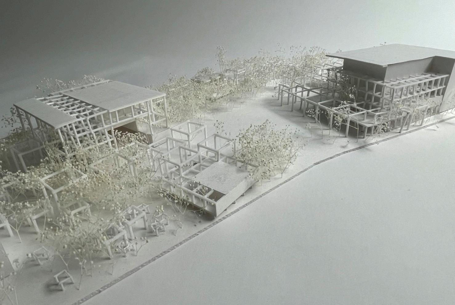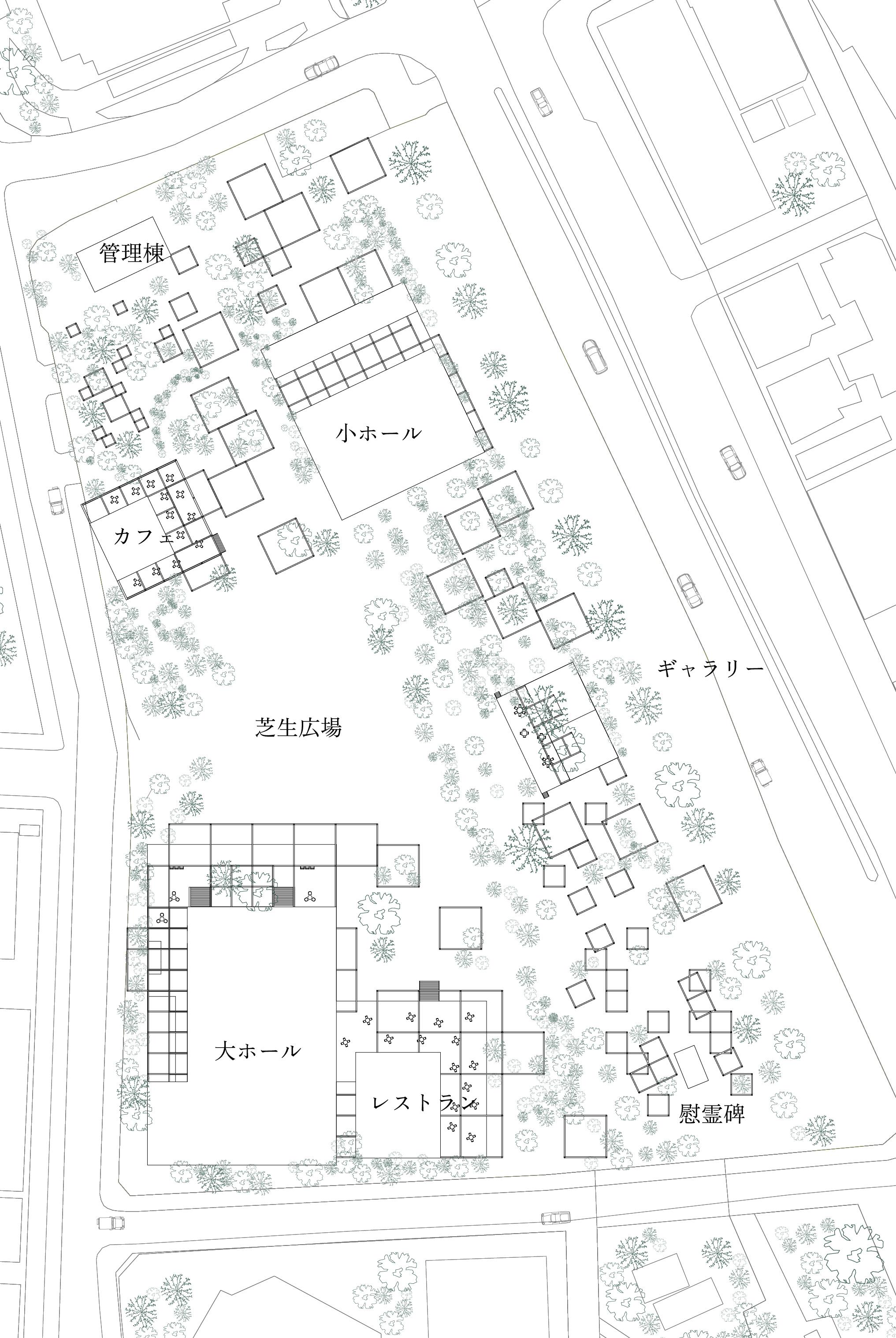 震災の記憶が残る公園に大小のコンサートホールを計画する