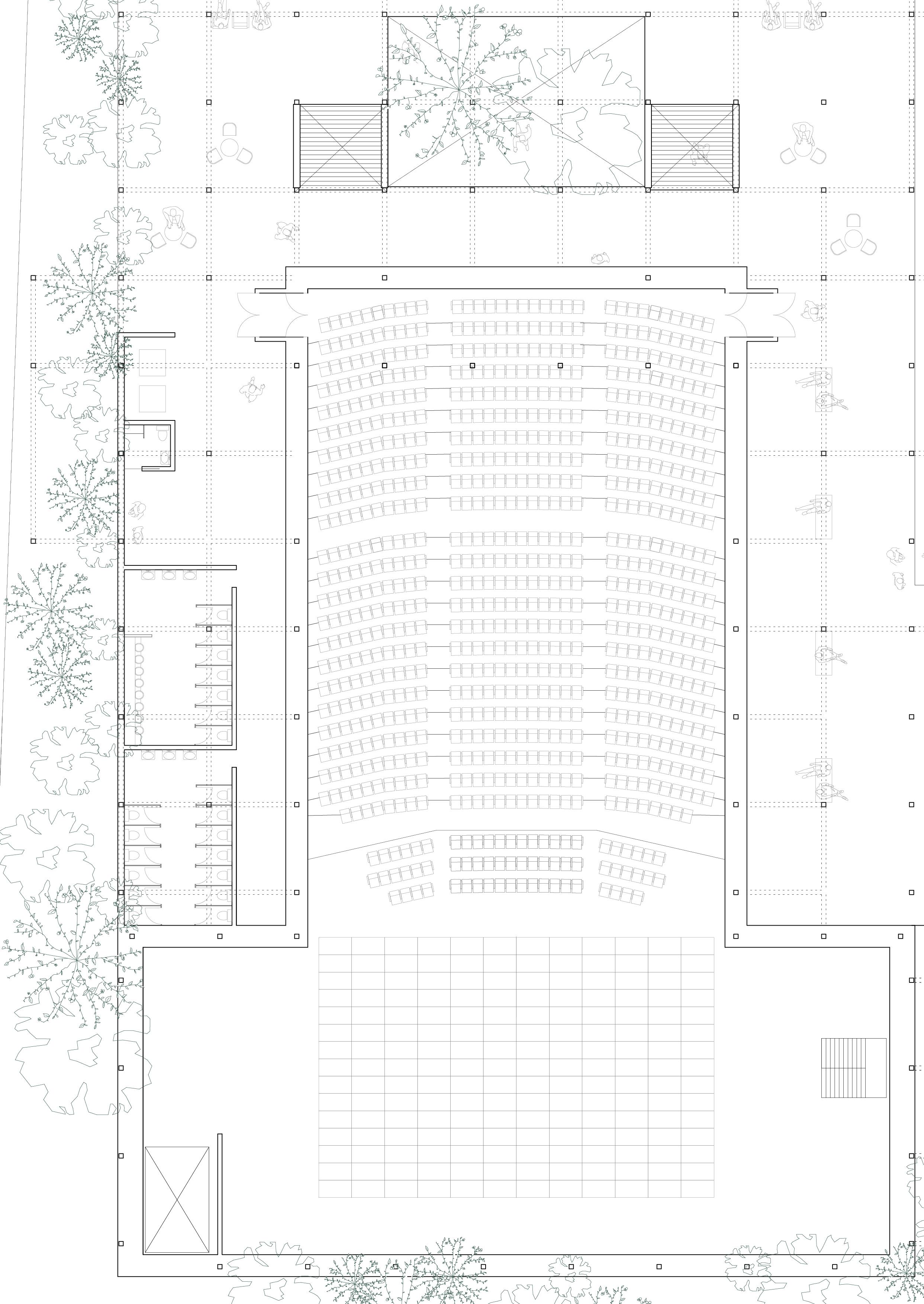 小ホールとカフェとを連続させる 単体でもその存在を示すように