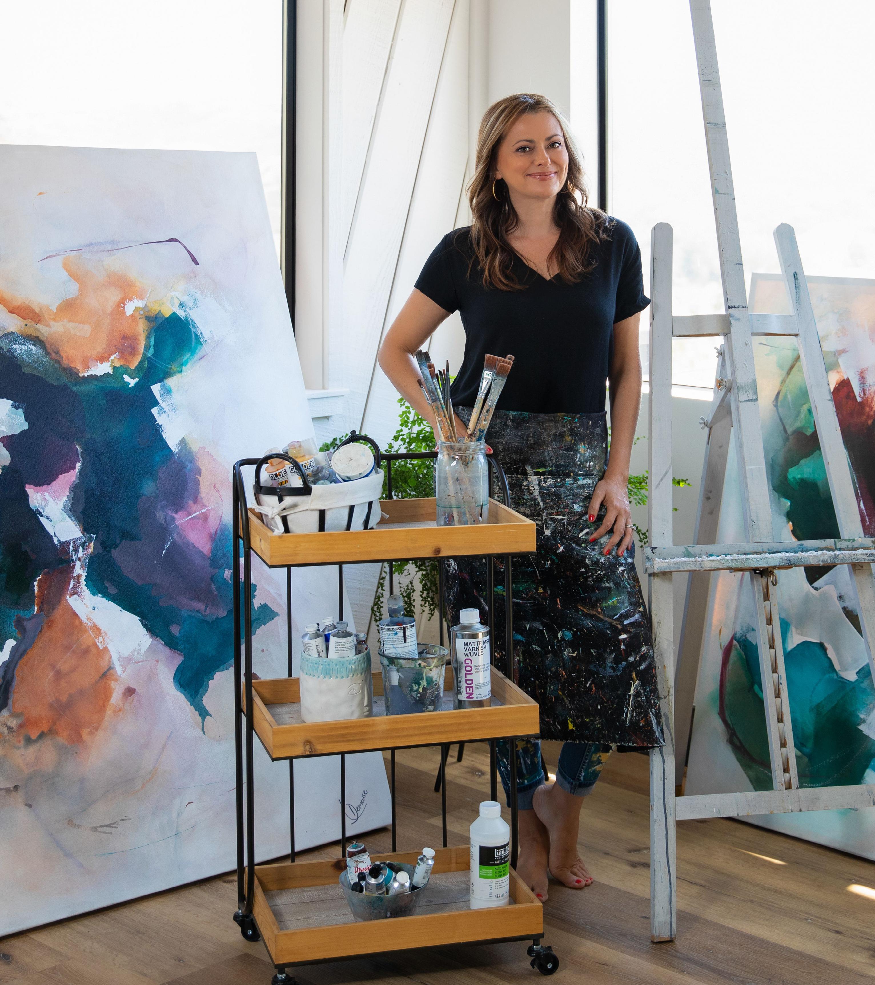 WhatMOMSTOWN:inspiresyou most in the creation of your LETICIA:art? Most of my inspiration comes from human connections and nature. Living close to the beach is a blessing! But I’m also in spired by travel, music, and my lovely son. I love painting because it keeps me aware of the moment and it brings me joy and peace. Acrylic is my medium of choice and I love nothing more than turning the music on and “dancing” around my canvas. Seeing the work come alive is a feeling I can’t put into words. Having special people fall in love with my work is the cherry on top!