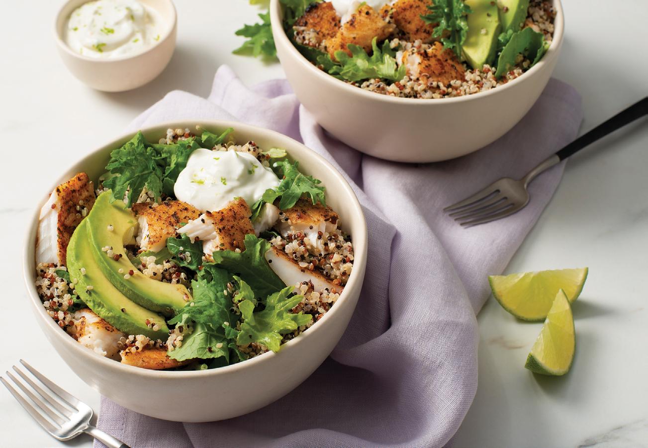 19MOMSTOWN • SEP/OCT 2022 time-saving Baja Fish Taco Bowls Beef & MeatballsQuinoa weeknight meal SOLUTIONS WHETHER IT’S LONG DAYS AT THE OFFICE, CALENDARS FULL OF SOCIAL COMMITMENTS OR EVENINGS SPENT ENJOYING YOUR LITTLE ONES’ EXTRA CURRICULAR ACTIVITIES, IT’S EASY TO FIND YOURSELF SHORT ON TIME TO SPEND IN THE KITCHEN. CALLING ON QUICK AND EASY MEALTIME SOLU TIONS CAN BE JUST WHAT YOUR FAMILY NEEDS TO ENSURE DINNERS TO GETHER ARE ALWAYS ON THE MENU. PREP TIME: 10 MINUTES COOK TIME: 10 MINUTES SERVINGS: 4 PREP TIME: 20 MINUTES COOK TIME: 25 MINUTES SERVINGS: 4 TO SAVE AT THE GROCERY STORE 5 quick tips ingredientsingredients to prepare TWO Delicious Ways to Cook with Quinoa to prepare 2 bags Success Tri-Color Quinoa 2 tablespoons olive oil 4 white-fleshed fish fillets (5-6 ounces each) 1 teaspoon Cajun seasoning 1/2 teaspoon salt 3/4 cup plain Greek yogurt 1 tablespoon lime zest 1 teaspoon lime juice 1/4 teaspoon ground cumin 4 cups packed baby kale 1 ripe avocado, halved, pitted, peeled and thinly sliced 1 bag Success Tri-Color Quinoa nonstick cooking spray 1 pound extra-lean ground beef 1 1/4eggcup grated carrot 1/4 cup finely chopped onion 2 tablespoons ketchup 2 garlic cloves, minced 1 tablespoon soy sauce 1/2 teaspoon salt 1/2 teaspoon black pepper 1/4 teaspoon dried oregano 1/4leavesteaspoon dried thyme leaves 1 1/2 cups marinara sauce 1/2 cup shredded mozzarella 2cheesetablespoons chopped parsley Prepare quinoa according to package directions. In large skillet over medium heat, heat oil. Sea son fish with Cajun seasoning and salt. Cook 2-3 minutes per side, or until fish is lightly browned and starts to flake. Set aside. In small bowl, stir yogurt, lime zest, lime juice and Incumin.medium bowl, toss quinoa with kale. Divide between four bowls. Top each with fish, sliced avocado and dollop of yogurt and lime crema.