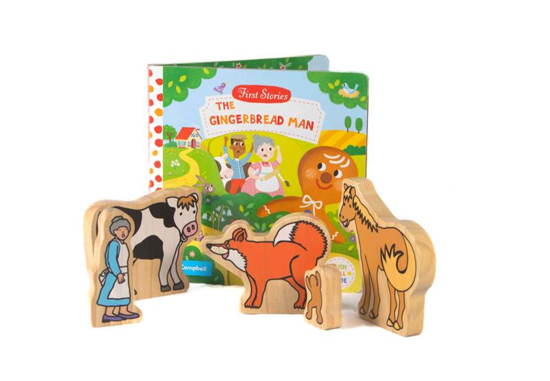 Wooden Characters from the story including Gingerbread man, horse, cow, fox & woman