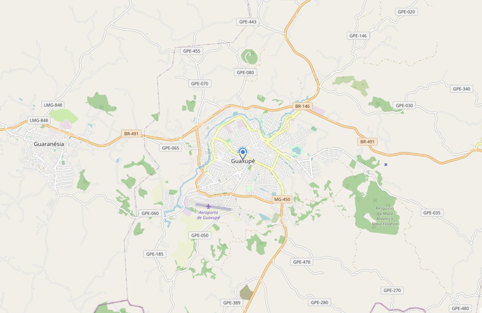 Mapa da cidade de Guaxupé FONTE: Google Earth 2022