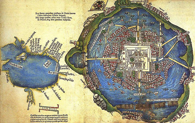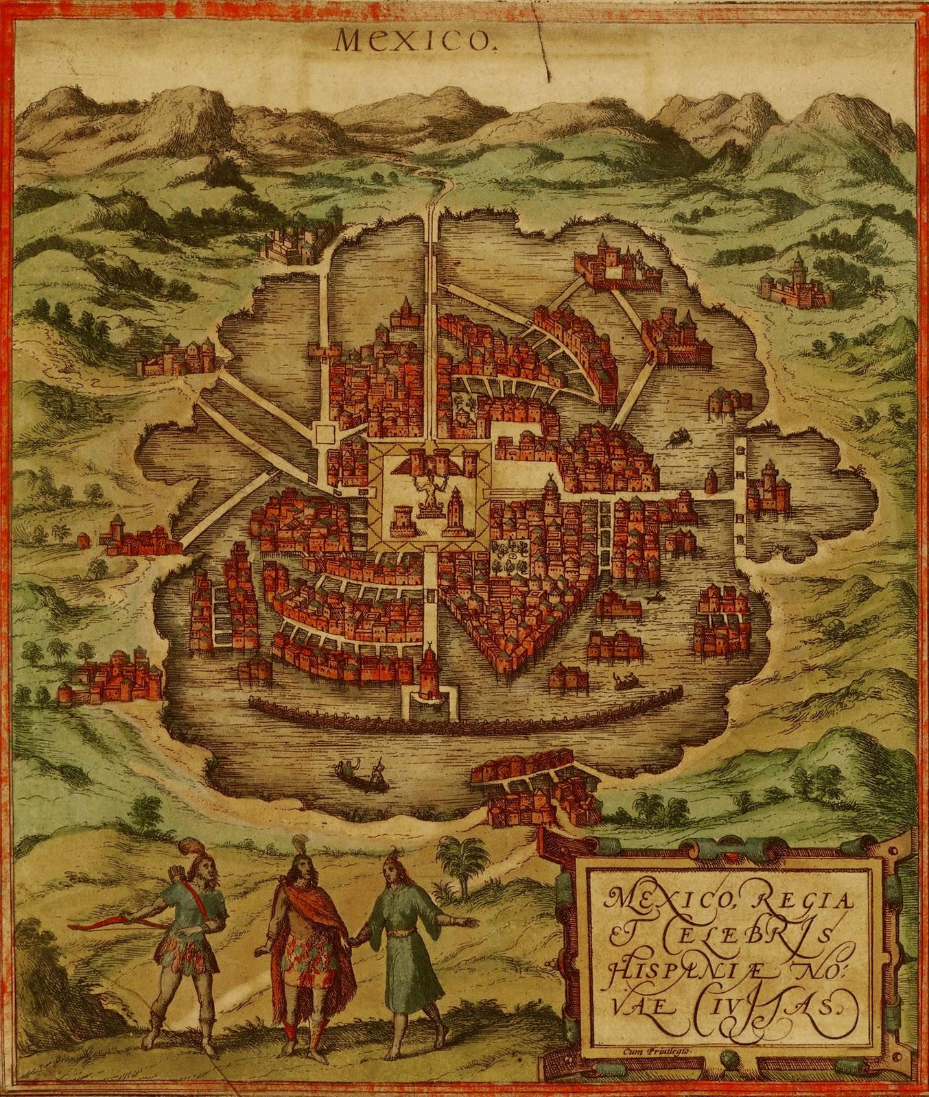 O mapa de Flandes foi inspirado em outro mapa de 1524, onde é possivel percceber que já havia ocorridoa transformação da antiga cidade asteca em uma tipica cidade europeia. Nesse mapa é possível perceber as ligaçoes entre a costa e a cidade, a divisão das moradias e o modo de viver também é notado juntamento com a grande praça ao centro, que antes abrigava o tempo do imperador, agora abriga a catedral da cidade.