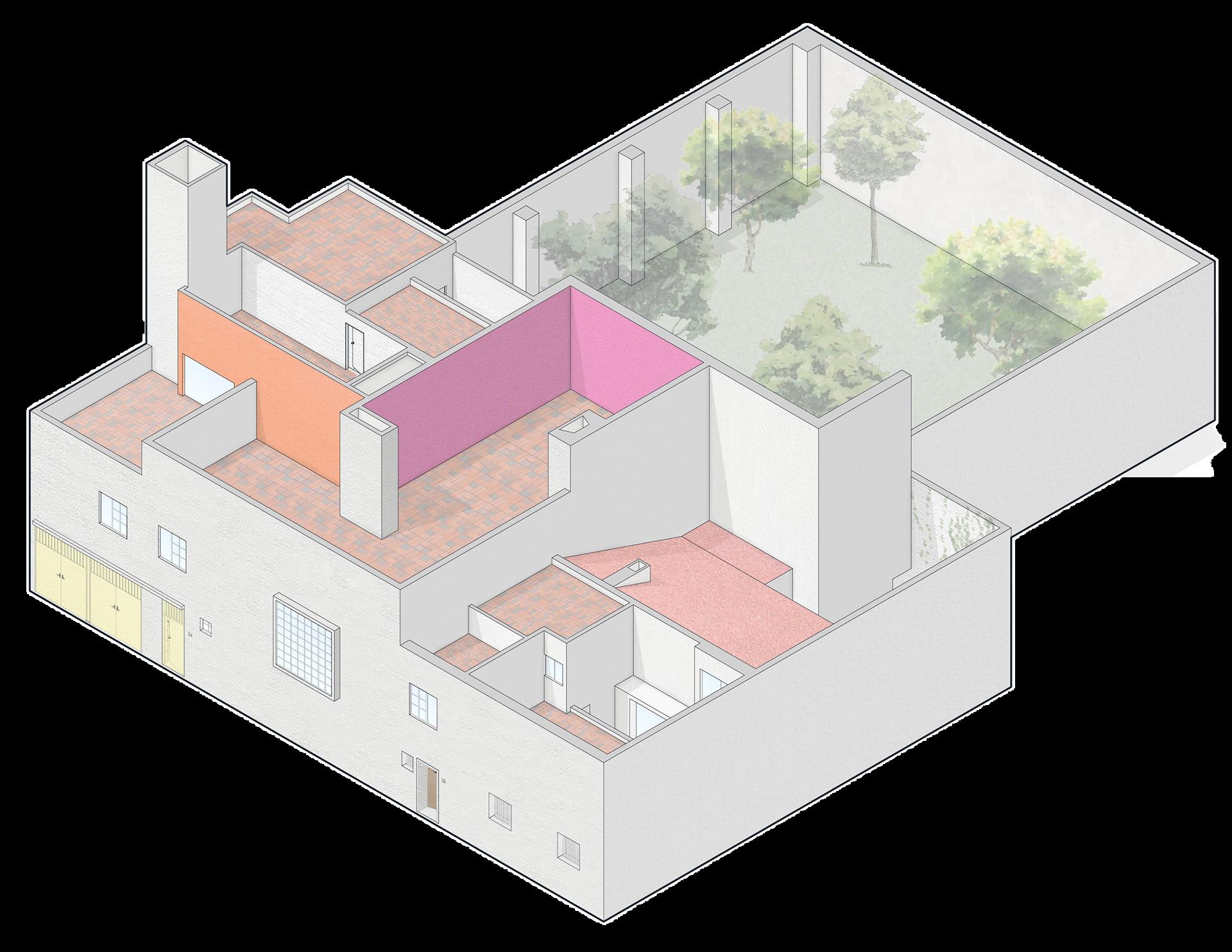 Colagem e Isométrica da Casa Barragan, onde podemos observar a confluências dos espaços. FONTE: Grupo Responsável
