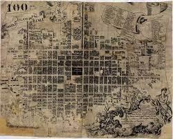 O mapa a cima demosntra a evolução a pos tres decadas da conquista de Hernán cortes, os espanhóis substituiram os templos astecas com predios tipicamente europeus, ja estava consolidados as divisoes sociais do espaço urbano e como eram divididas a vida social e o local de trbalho dos habitantes.