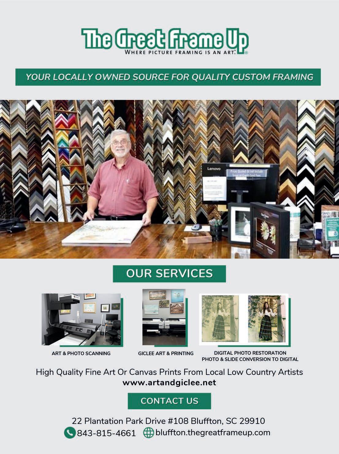 For a 12-mile-long by five-mile-wide barrier island, Hilton Head Island o ers numerous arts and cultural experiences. With some of the finest art galleries, live music venues, and dance and theater productions happening year-round, Hilton Head Island’s arts and culture scene is second to none. Bravo!