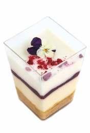 Kiekvienas deserto sluoksnelis ypač apgalvotas ir puikiai derantis su kitais, kurie drauge sukuria nuostabią skonių harmoniją. Citrusiniame deserte susijungia citrinų bei mangų kremų darna su mascarponės sūrio elegancija. Braškinis desertas pakerės uogų mėgėjus - čia susitinka vanilinis kremas, raudonųjų uogų traškutis bei naminė braškinė uogienė.