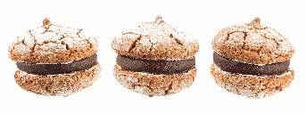 Klasikiniai tališki marcipaniniai sausainėliai su nepaprastai sodriu juodojo šokolado pertepimu.