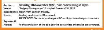 We look forward to seeing you at the sale, if you require pre sale inspections please contact Peter & Jayne.