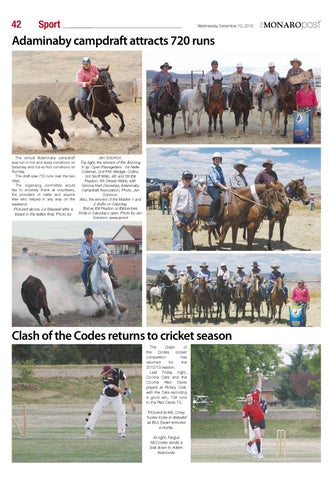 Clash of the Codes returns to cricket season The Clash of the Codes cricket competition has returned for the 2012/13 season. Last Friday night, Cooma Cats and the Cooma Red Devils played at Rotary Oval, with the Cats recording a good win, 134 runs to the Red Devils 73. Pictured at left, Corey Tucker looks in disbelief as Boo Ewart removes a stump. At right, Fergus McCosker sends a ball down to Adam Asanovski.