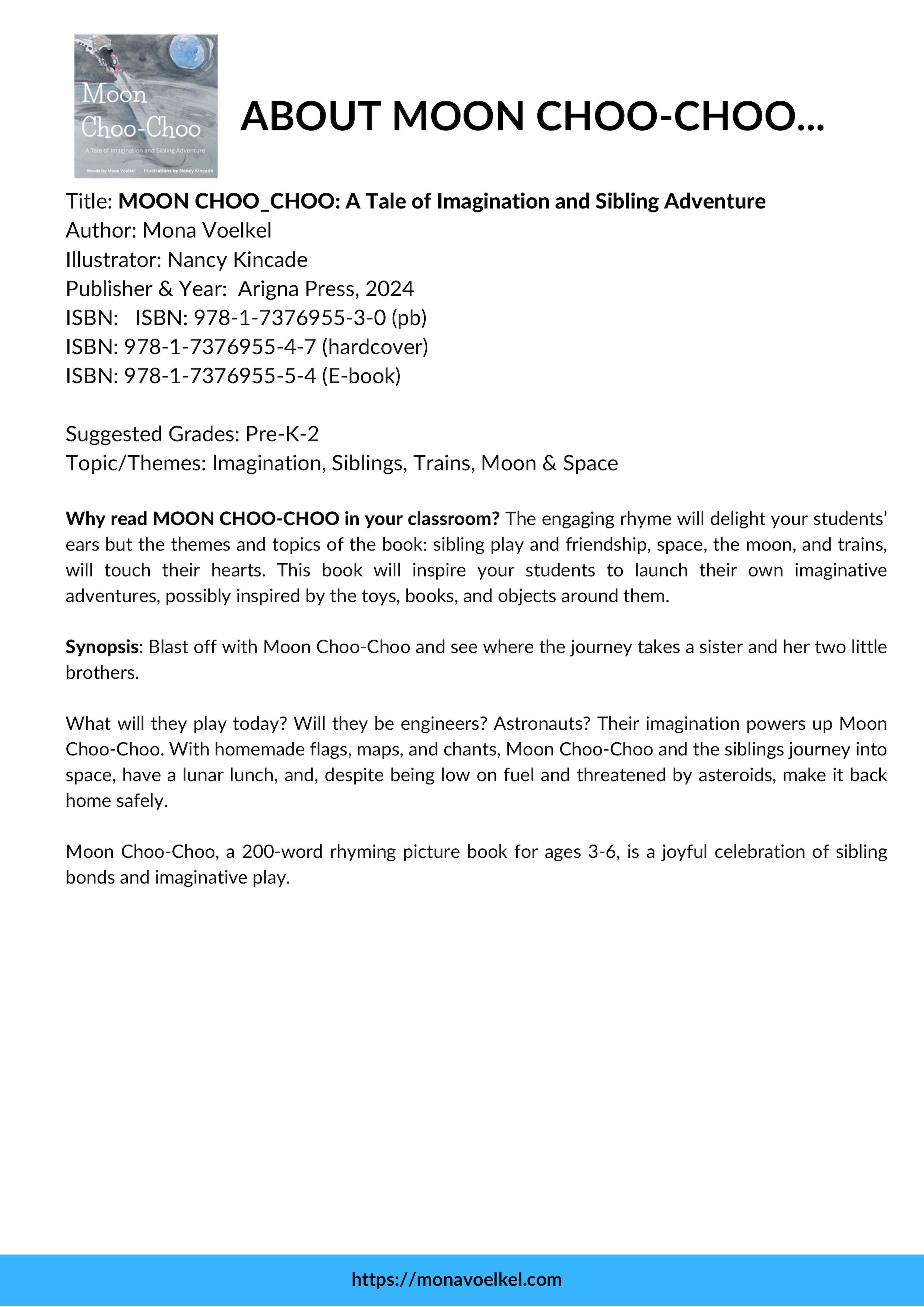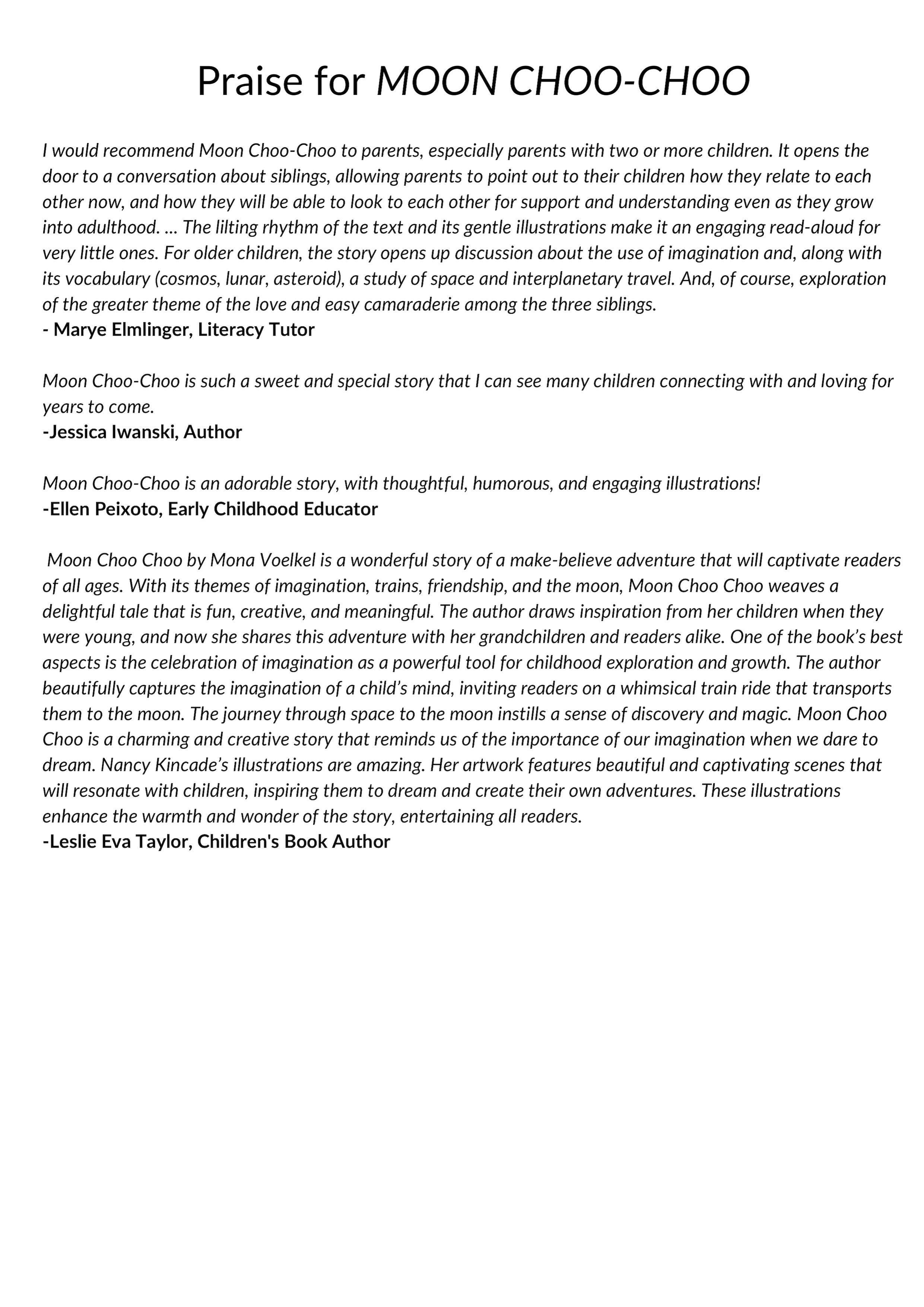 Blast off with MOON CHOO-CHOO and three spunky siblings on a rhyming journey of imagination.