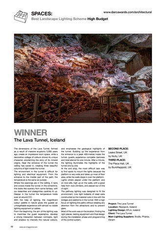 Project: The Lava Tunnel Location: Reykjavik, Iceland Lighting Design: EFLA, Iceland Client: The Lava Tunnel Main Lighting Suppliers: Anolis, Pharos, Osram