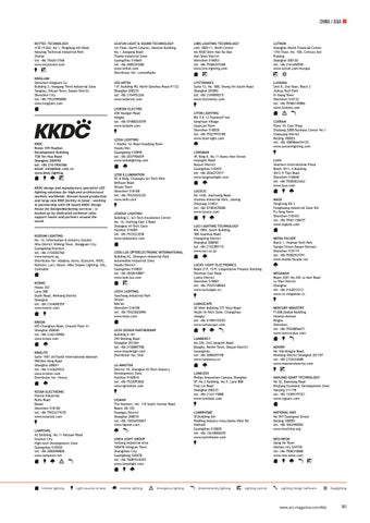 KOIZUMI LIGHTING No. 12, Information & Industry Garden Xihu District Shilong Town, Dongguan City Guangdong Province tel: +86 2154202760 www.koizumi.sg Distributor for: Aldabra, Astro, IGuizzini, KKDC, Koizumi, Luci, Meyer, Mike Stoane Lighting, XAL, Zumtobel