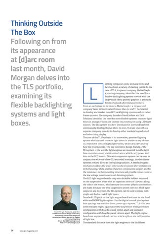 Thinking Outside The Box Following on from its appearance at [d]arc room last month, David Morgan delves into the TLS portfolio, examining its flexible backlighting systems and light boxes.