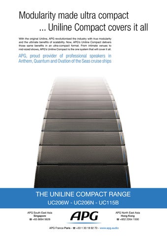 Modularity made ultra compact ... Uniline Compact covers it all With the original Uniline, APG revolutionised the industry with true modularity and the ultimate benefits of scalability. Now, APG’s Uniline Compact delivers those same benefits in an ultra-compact format. From intimate venues to mid-sized shows, APG’s Uniline Compact is the one system that will cover it all.