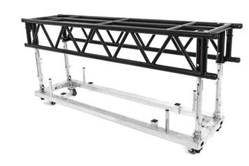 The MLT THREE has joined the MLT ONE and MLT TWO Pre Rig Trusses to complete the MLT Series, which now consists of the MLT THREE, MLT TWO, MLT ONE, MLT ZERO and MLT FRAME. The MLT THREE has no closed head frame and is open at the bottom, making it easier to mount moving lights or video modules in the truss. In addition, the dolly of the MLT THREE Pre Rig Truss has extended telescopic legs that allow the user to mount complete video modules, including the hanging frame, in the truss and leave them in the truss during transportation. A rail system which makes mounting the units in the truss even easier is available as an option for the MLT THREE, while the rail system is a double rail system. This means that the units can be hung on two different levels and no lowering device is required. The rail system also allows the user to mount lighting equipment at the transitions between two trusses, and to create seamless transitions between video modules in the trusses.