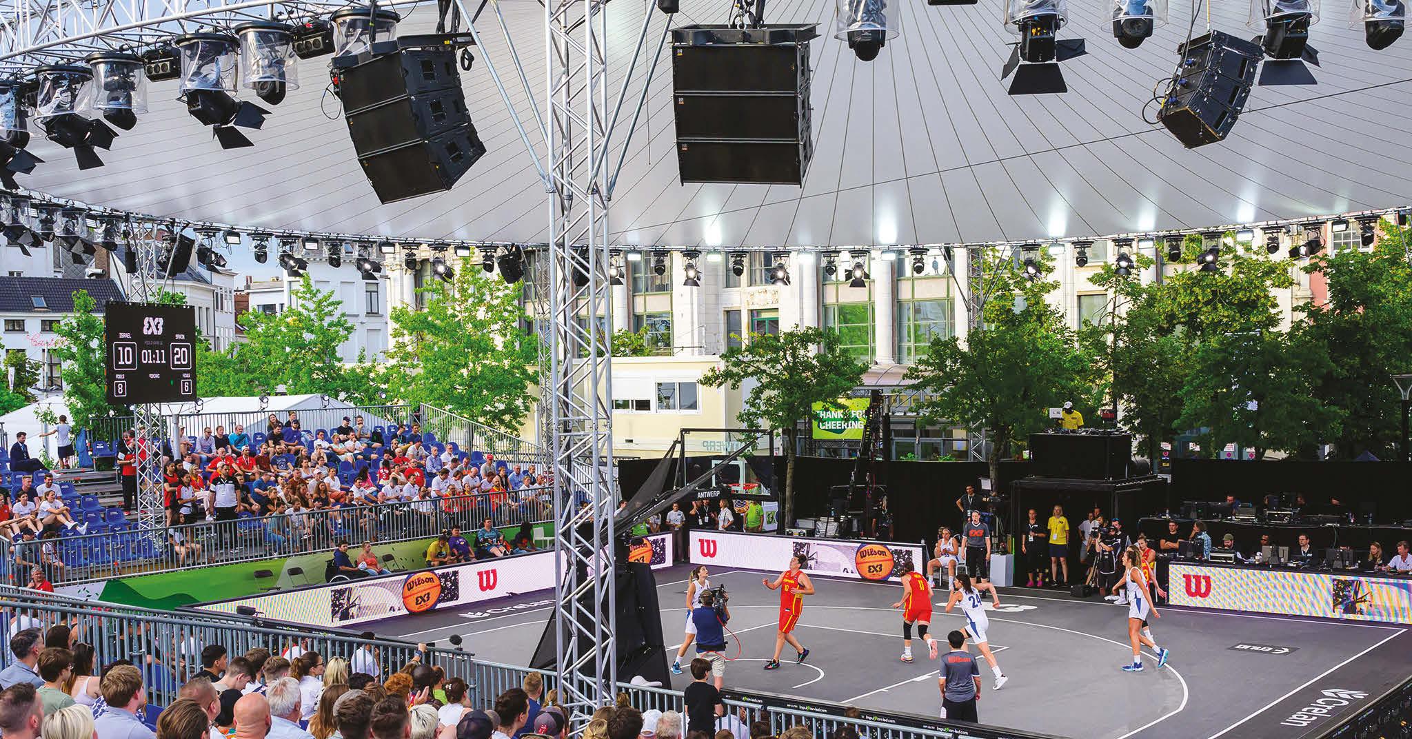 rom 21 to 26 June 2022, 20 teams competed in the Crelan FIBA 3×3 World Cup in front of a capacity crowd in the famous Groenplaats square in Antwerp, Belgium. Serbia won its fifth world championship title in the men’s final, while France prevailed against Canada in the women’s finals. To make it camerafriendly, the urban sporting event was illuminated by Cameo F4 D Fresnel spotlights and Cameo ZENIT outdoor LED wash lights.