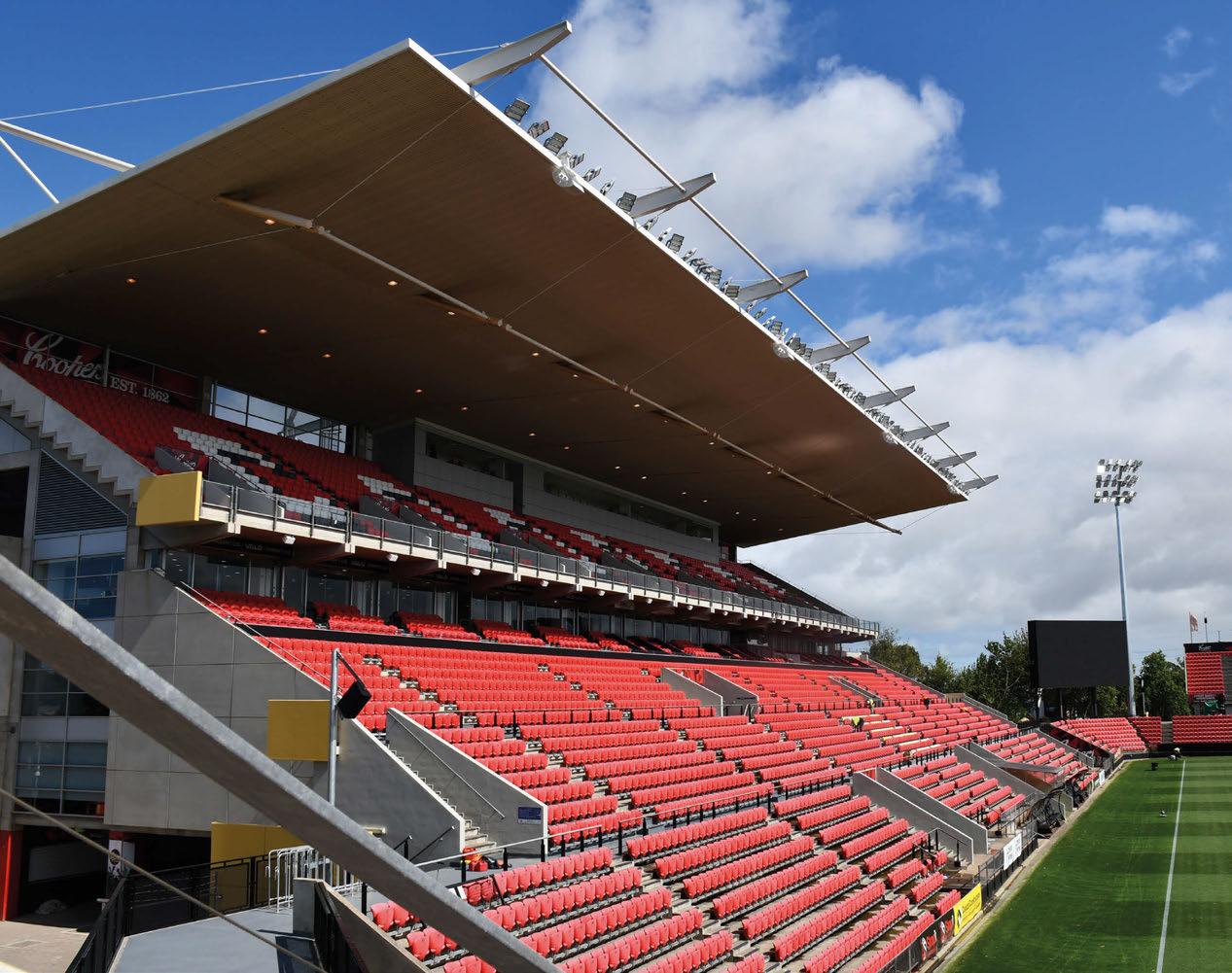and Northam stands and upgrade them with two superwide 72 square metre displays that feature ADI’s new proprietary MTX technology. The decision to upgrade to a 10mm 32:9 display and move away from the traditional 16:9 format will provide additional content zones for in-game club communications, brand activations and live match feeds – all of which can be displayed simultaneously.