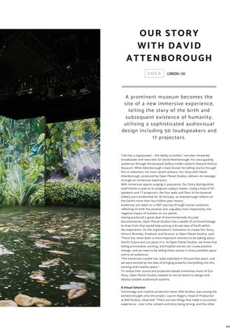 To develop Christie MicroTiles LED, its engineers applied everything that made their original MicroTiles so popular and incorporating the latest in LED display technology. MicroTiles LED has limitless design freedom. Proprietary cabinet-free Click-n-Go LED tiles can be arranged in near-limitless ways, including 90° inside/outside corners and concave and convex curves. Further, there is superior visual quality. Powerful processing including 12-bit input sources, 4K@120Hz and HDR10 compatibility, combined with high-brightness and cinema-quality colour, produces true-to-life detail. Christie’s propreitary QuickMount system, laser-cut steel mounting sheets and machined wall anchors, reduce installation complexity and eliminate the alignment challenges of traditional LED products. Patened Neighbour Detection means indivual tiles automatically detect and self-locate, whilst the sensorbased AutoMatch feature automatically matches colour and brightness to achieve >97% uniformity across the entire display for the entire operational lifetime. Finally, users can experience robust, flickerfree, and uncompromised Active 3D at 60Hz per eye with MicroTiles LED Active 3D. Christie designed this display application to enhance visualisation and collaborative design processes. www.christiedigital.com