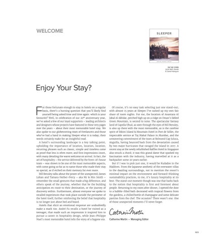 WELCOME HOSPITALITY EXPERIENCE & DESIGN ISSUE 89 WWW.SLEEPERMAGAZINE.COM