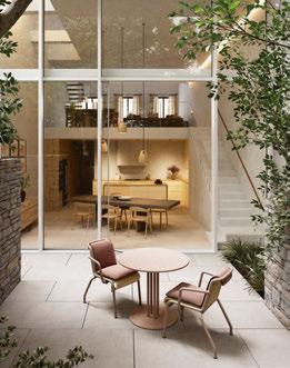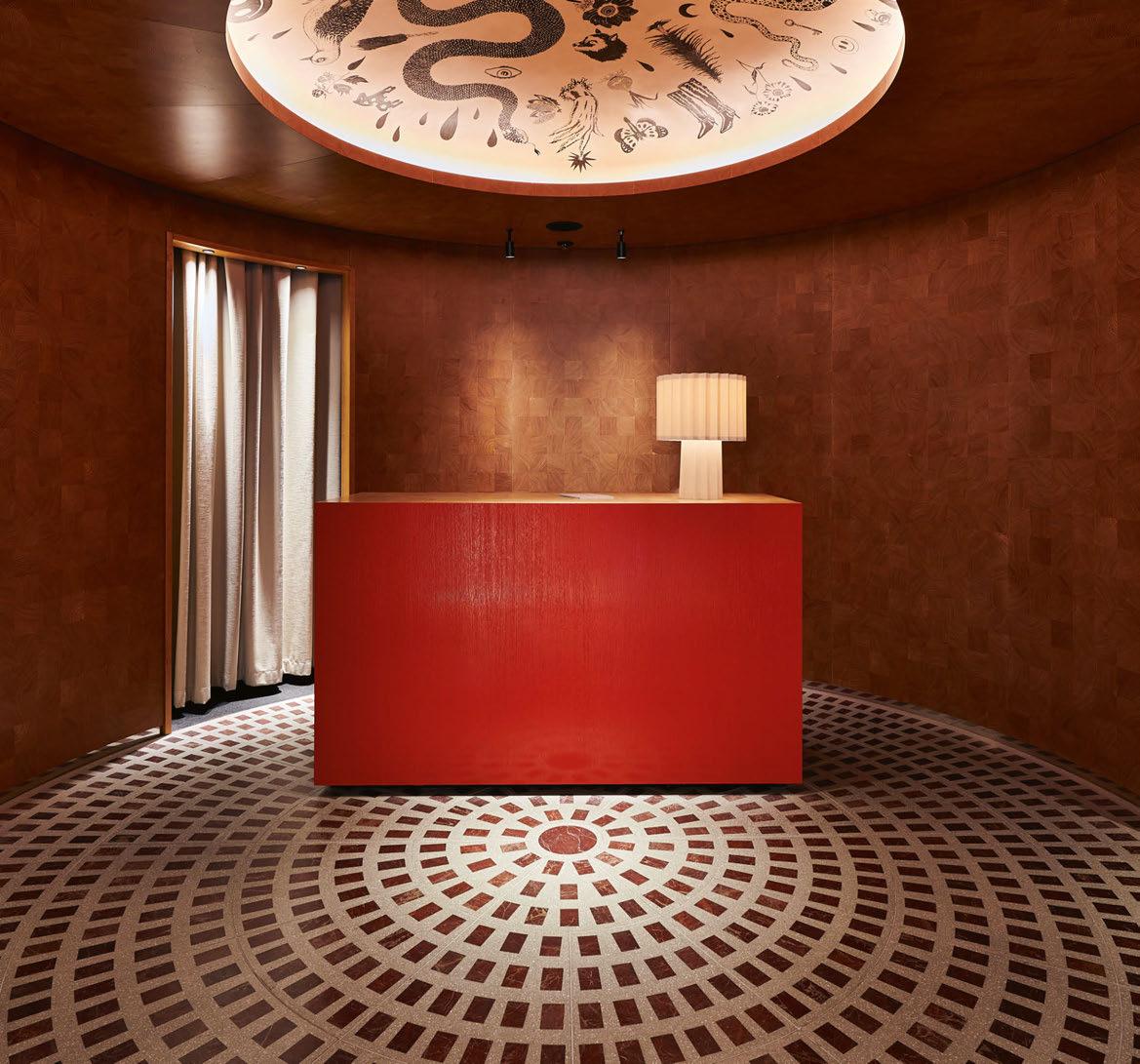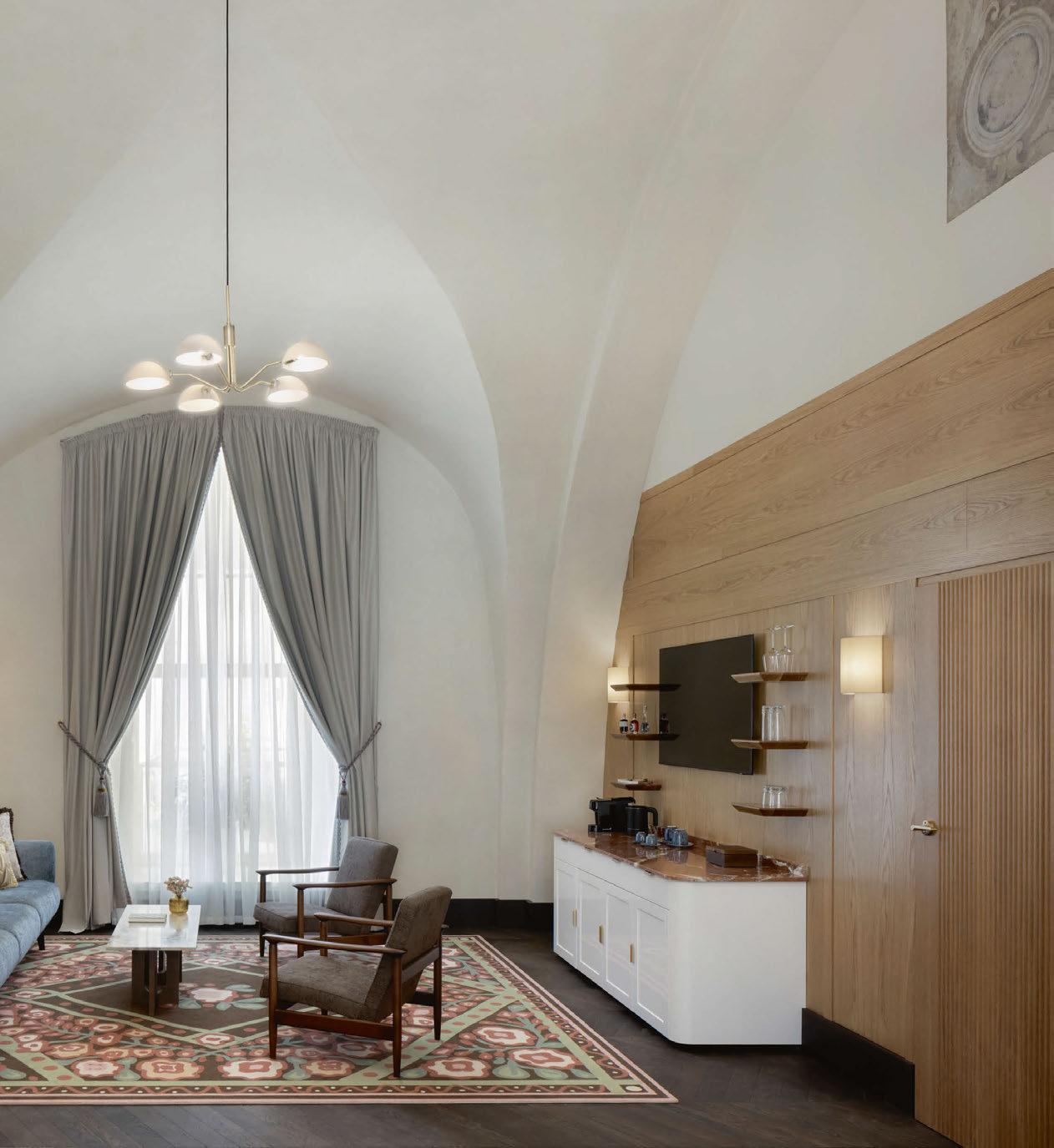 Founded by Aaron David Clarke – formerly of Soho House and Martin Brudnizki Design Studio –together with Marta Tuneu, with previous positions at Calvin Klein and Louis Vuitton, ADC Atelier blurs the lines between interiors and fashion. Two years after the atelier’s inception, the Barcelonabased duo have completed their debut hotel project, converting a 15th-century monastery in Krakow into a hotel and members’ club, where interiors translate elements of traditional Polish craftsmanship into contemporary design details.