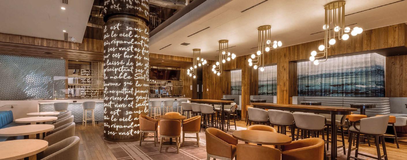 For the recently opened Canopy by Hilton hotel in Toronto, Creative Matters supplied eight area rugs for the property’s Dia restaurant. Woven Axminster carpet was shaped into several sizes to create an intentional pathway through the venue, with each rug carefully hand-finished with rounded corners. Inspired by foliage and painterly abstraction, the designs include a leaf pattern with a translucent effect that was achieved by precise colour blends and a palette that is simultaneously rich and light. Creative Matters has been offering imaginative and practical floorcovering solutions to the hospitality industry for over 25 years. The Torontobased studio’s design and environmentally-conscious production expertise has seen it supply hundreds of hotels in 28 countries worldwide, from the handtufted red carpet in Faena Miami Beach’s lobby to 128 handknotted rugs for Shinola Hotel in Detroit. www.creativemattersinc.com
