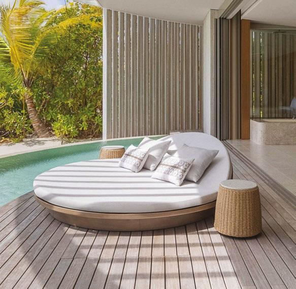 Bringing an array of launches to the table in 2023, Janus et Cie’s new Ares collection is a versatile range suited to both indoor and outdoor spaces, able to accentuate hospitality interiors with sleek finishes and neutral tones. Drawing subtle influences from Mid-Century Modern silhouettes, the series combines woven rope, durable mesh and plush cushions with teak, stone and Carrara marble. Amongst the multiple seating and table options within the dining and lounge range are armchairs, lounge chairs, sofas and tables – all of which are offered in various heights and sizes, making Ares a suitable solution for various design and spatial requirements.