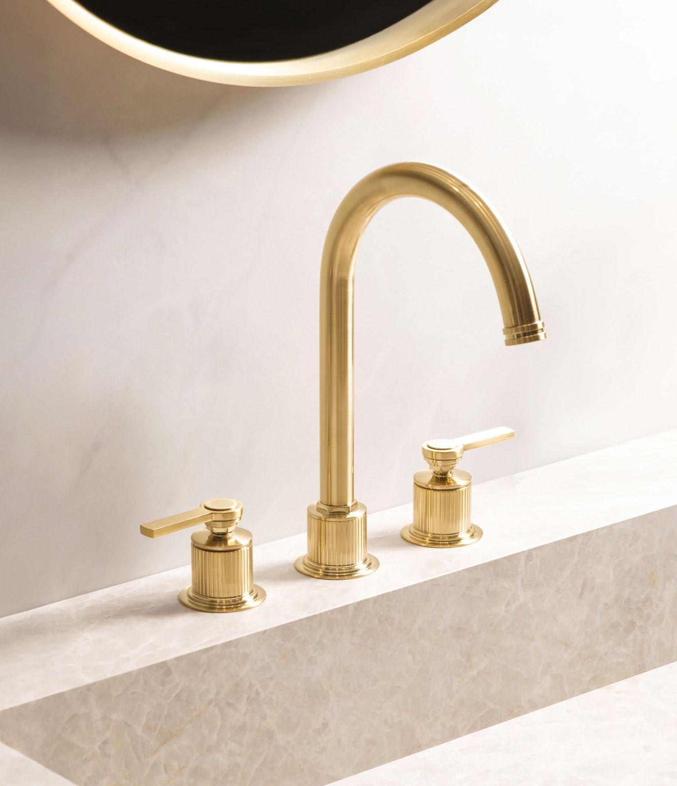 Inspired by the elegance of luxury hotel living, the modern classic bathroom range combines timeless forms with contemporary precision. Encompassing scalloped mixer edges, ornate octagonal mirrors, luxuriously profiled furniture and wall lighting crafted from Spanish alabaster and brass, the Carlyle range provides specifiers with a cohesive and complete bathroom solution, ensuring design continuity throughout. Brassware is available in a refined palette of finishes, including Chrome, Brushed Nickel, Soft Bronze, PVD Oyster and Anthracite – providing versatility for both classic and contemporary design schemes. Meanwhile the bathroom furniture is available in three finishes: Dark Oak with Soft Bronze profile, Light Oak with Oxide profile and Matt White with brushed bronze profile. Positioned as a luxury product range, Carlyle has been developed with a premium finish in mind. www.bagnodesign.it