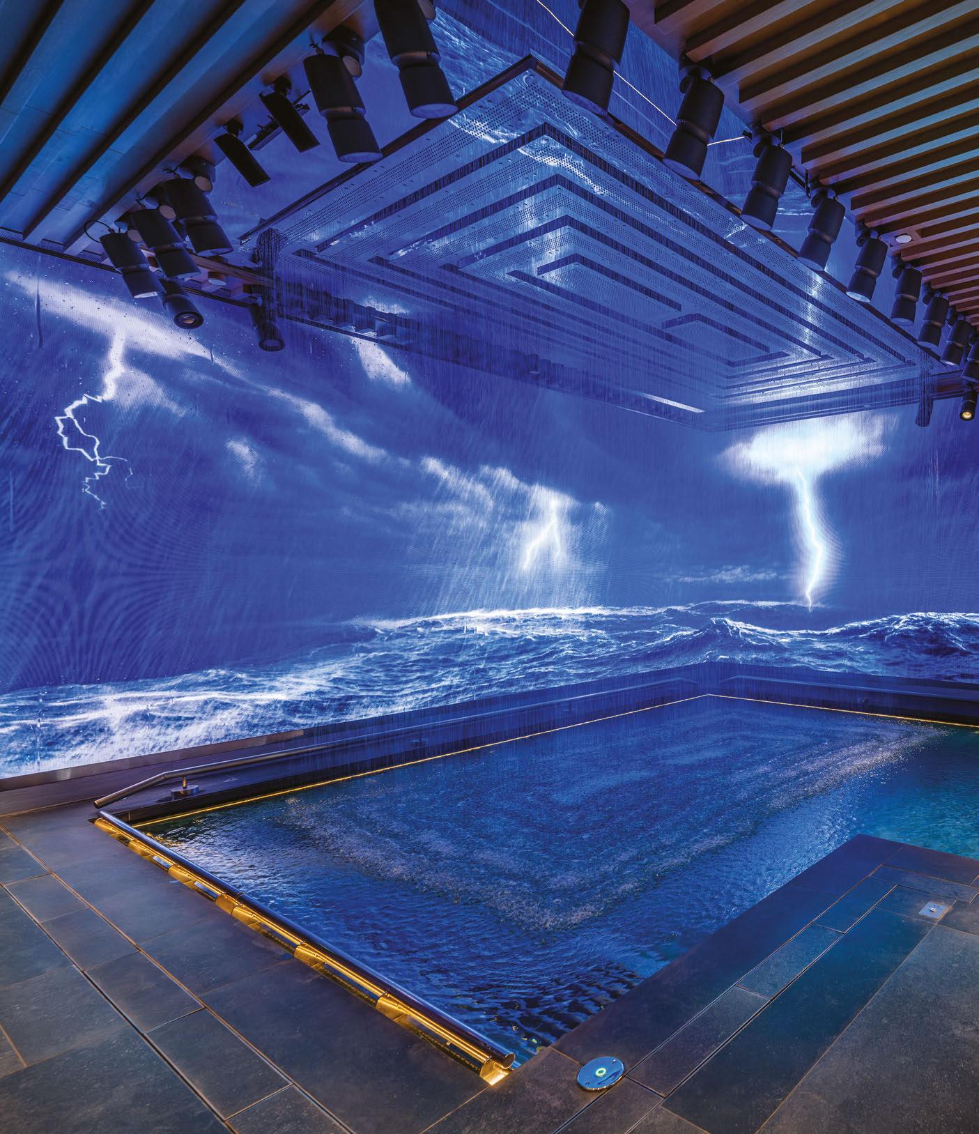 With more than 60 years of experience in spa design and engineering, Barr + Wray was entrusted with the redesign of Tria at MGM Macau as part of the hotel’s top-to-toe refurbishment programme. The spa features signature spaces including the hammam experience – a domed sanctuary with a separate steam room, a humid hammam chamber for a traditional scrub and massage, and a salt relaxation room. The highlight however, is the experience pool, which features an overhead rain shower surrounded by LED screens, lighting and sound to create an ever-changing immersive landscape that alternates between thunderstorms, rainforests and tropical beach scenes.