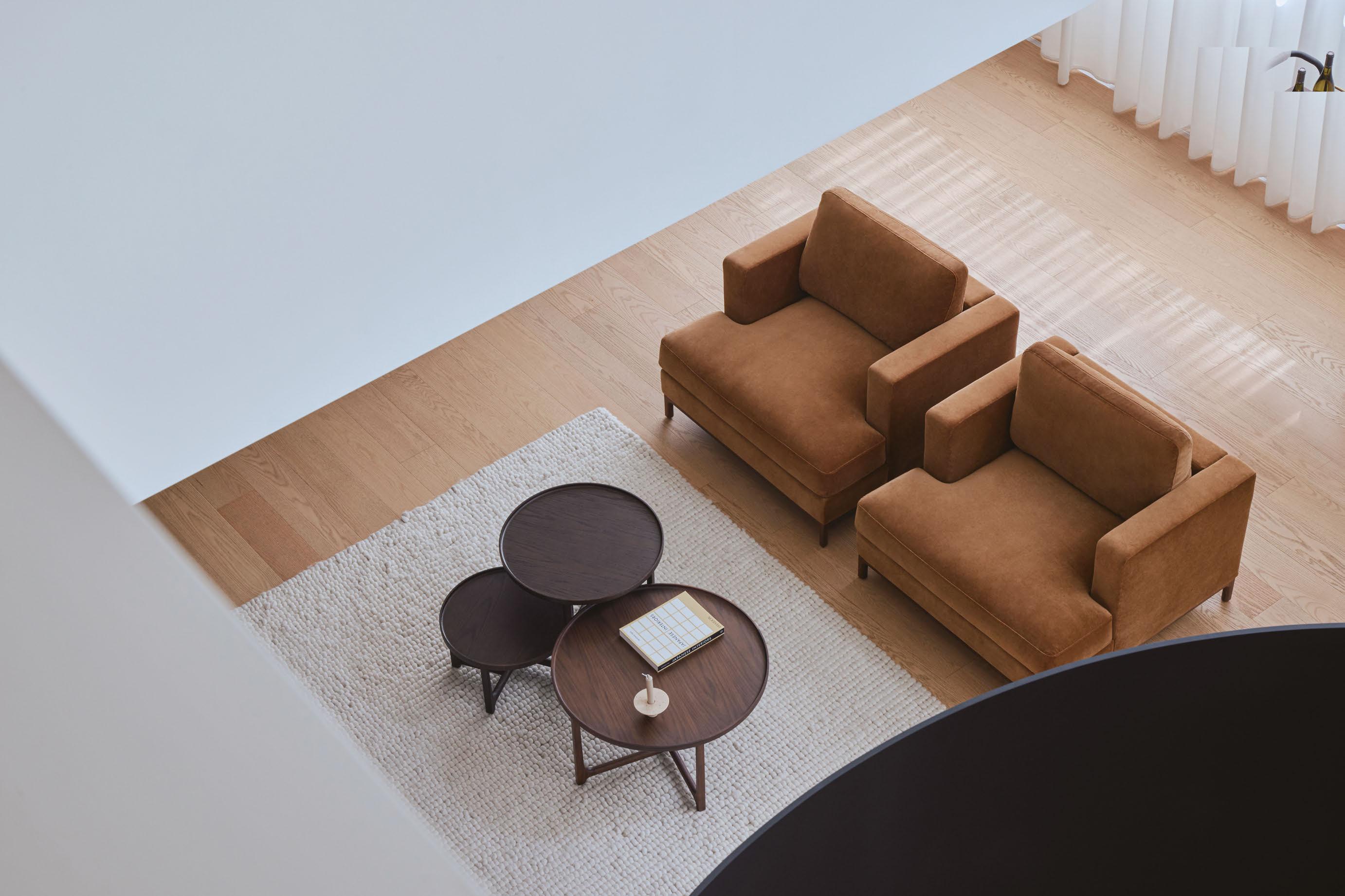 Designed by San Francisco-based Michael Vanderbyl, Domicile blends rich aesthetic influences into a contemporary collection that allows for striking compositions of silhouettes and contrasting materials. A new addition to the range is the Swivel Chair, offering a masterful blend of American Modernism and Mid-Century Scandinavian elegance. Engineered for enduring style, comfort and durability, the chair features a wide upholstered seating frame while a stainless steel swivel base facilitates movement.