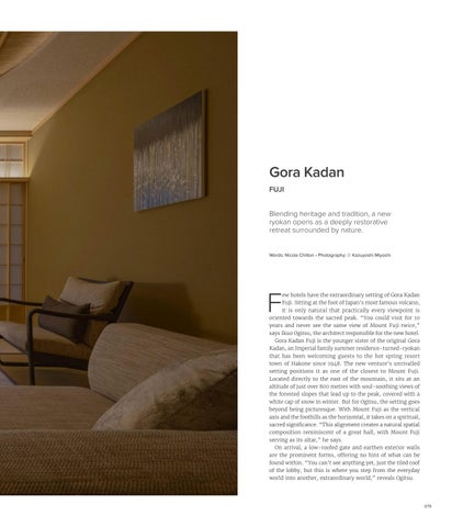 Gora Kadan FUJI Blending heritage and tradition, a new ryokan opens as a deeply restorative retreat surrounded by nature. Words: Nicola Chilton • Photography: © Kazuyoshi Miyoshi