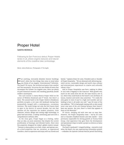 Proper Hotel SANTA MONICA Following its San Francisco debut, Proper Hotels lands in LA, where organic textures and natural elements of the coastline take centrestage. Words: Juliana Shallcross • Photography: © The Ingalls
