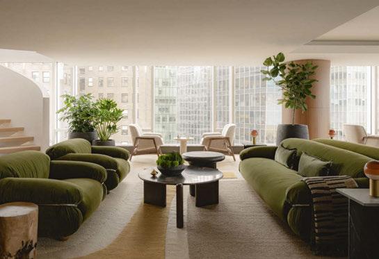 Born in Funchal on the island of Madeira, Nini Andrade Silva founded her atelier in 2006, and has since developed a style that combines storytelling with elements of the natural world. At W São Paulo, she celebrates Brazilian Modernist architecture through the use of angular geometrics and sinuous curves, which feature alongside natural light and a vivid palette of yellows and greens. “We wanted to transmit the colours of sunshine and of leaves, so that when you arrive, you know you’re in Brazil,” reveals the designer.